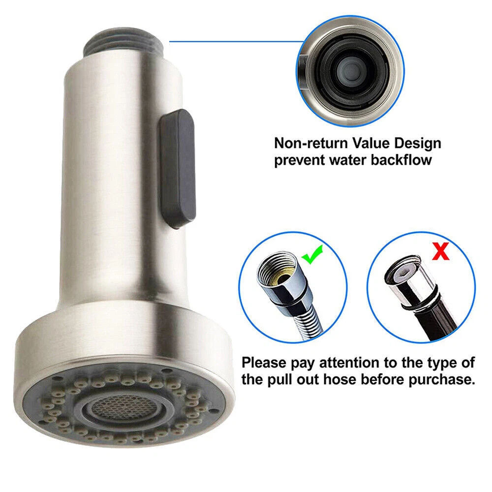 Features: Pull-Out Shape: Pull-Out Spout Height: 75-99 mm Installation: Deck Mounted Handle Type: Push Button Suitable For: Kitchen Sink Faucet Hole Spacing: G1/2 Finish: Brushed Nickel Number of Faucet Holes: 1 Color: Brushed Silver Item Width: 7.2 cm Item Length: 11.2 cm Faucet Mounting Type: Mixer Brand: Unbranded Item Height: 7.2 cm Item Weight: 0.13 kg Number of Faucet Handles: 1 Type: Pull-out Faucet Style: Modern