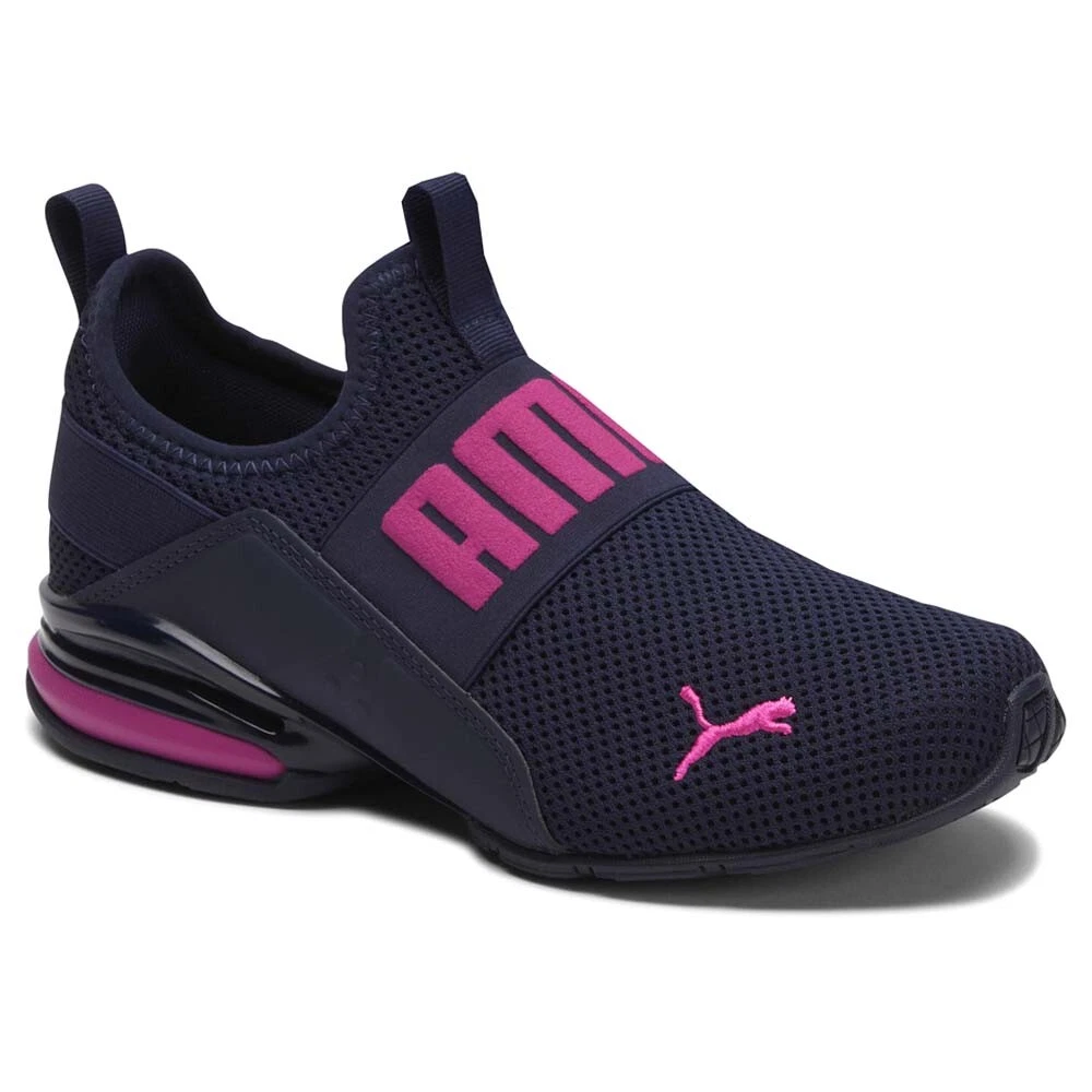 Axelion Slip On Wide Training Shoes Product Details Knit upper Slip on entry EVA midsole Rubber outsole Axelion is here to up your game. The breathable perforated upper combines with a TPU shank in the midfoot and EVA heel pod for stable cushioning and support through movements. A true gamechanger for comfortable everyday training shoes. Additional Details Color: Blue Occasion: Casual Gender: Womens Age: Adult Brand: Puma