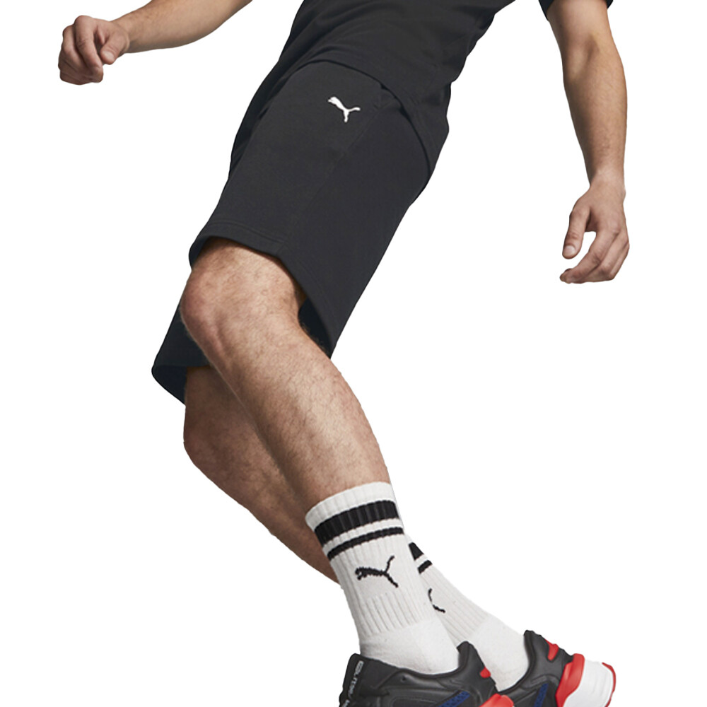 BMW MMS Essential Shorts Product Details Regular fit Elasticated waistband with internal drawcords Two side pockets BMW MMS branding on right leg PUMA Cat Logo on left leg Sophistication takes many forms, but there's no easier way to show it to the world than by wearing these BMW MMS Essentials French Terry Shorts. They're designed for daily wear, with an adjustable elasticated waistband, a regular fit, and spacious side pockets for all your valuables. The BMW MMS branding and PUMA Cat Logo add a dash of dynamism to the overall look. Additional Details Color: Black Occasion: Casual Gender: Mens Age: Adult Brand: Puma