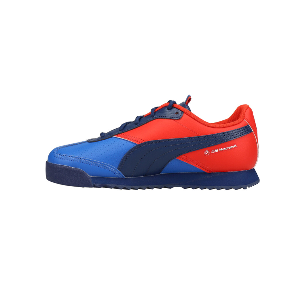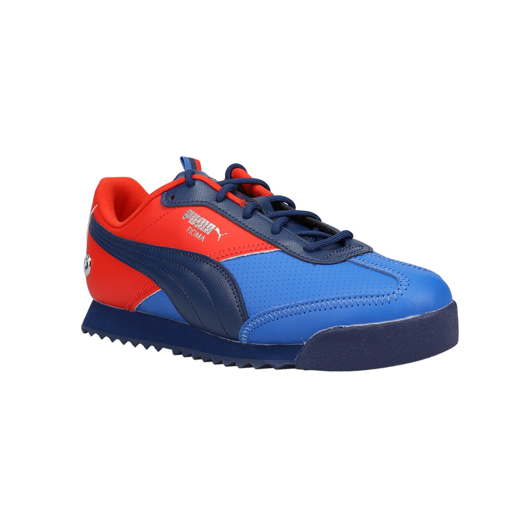 BMW MMS Roma Via Lace Up Sneakers (Big Kid) Product Details Synthetic leather upper Lace up closure EVA midsole Rubber outsole A classic PUMA silhouette gets a modern motorsport makeover in this motorsport iteration of the Roma Via Sneakers. Featuring clean lines, comfort-enhancing elements like a padded tongue and arch supports, plus urban edge and serious swagger, you'll rock the road looking right. Additional Details Color: Blue Occasion: Casual Gender: Boys Age: Youth Brand: Puma