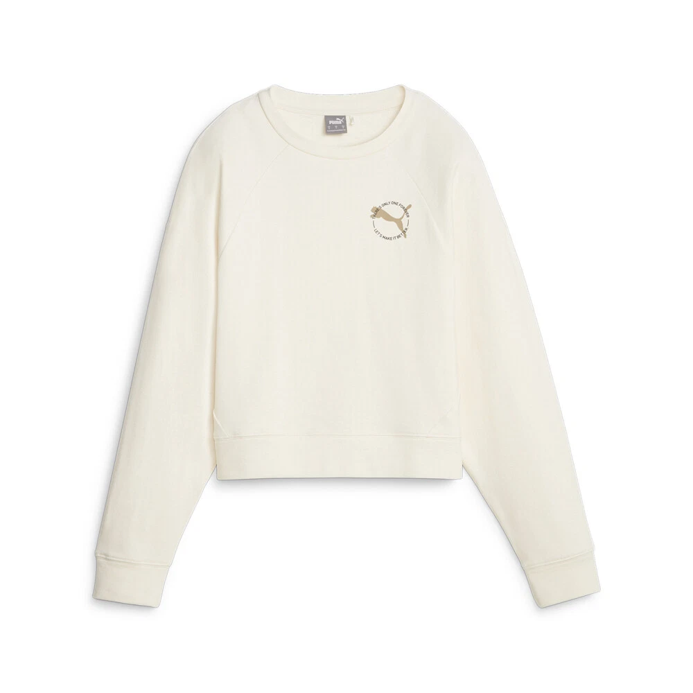 Better Sportswear Crew Neck Sweatshirt Product Details Regular fit Crew neck Terry jersey 85% cotton, 15% viscose The sportswear styles just got a little better, a little more environmental with this collection. Here, this sweatshirt has been built with recycled materials as a step toward a better future and contains bio-based materials that score high on durability and don't include synthetic fibres. Additional Details Color: Off White Occasion: Casual Gender: Womens Age: Adult Brand: Puma