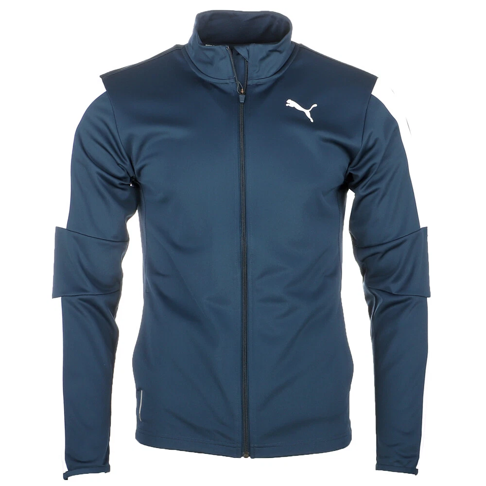 Blaster Full-Zip Jacket Product Details Regular fit Full-zip closure with stand-up collar Dual side pockets and elastic cuffs Articulated sleeves for ergonomic fit 100% polyester Featuring dryCELL moisture wicking technology, the PUMA Blaster Training Jacket pairs elastic cuffs with mesh inserts and smart storage for optimal comfort and performance. Additional Details Color: Blue Occasion: Casual Gender: Mens Age: Adult Brand: Puma