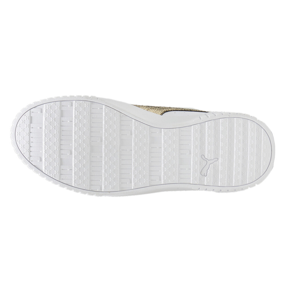 Carina 2.0 Metallic Shine Lace Up Sneakers Product Details Leather and synthetic upper Perforated vamp Textile lining Soft Foam Plus sockliner Rubber outsole Introducing the Carina 2.0 Metallic Shine. Taking its design cues from the '80s, this classic tennis silhouette feels right at home with the laid-back sneaker style of Californian beach towns. Staying true to its beloved look and feel, Carina steps into the new season with some refreshments: wider lines on the heel and perforations on the vamp and metallic gold and silver details to give a feminine look. What's more, the Soft Foam Plus sockliner is there to provide soft cushioning and comfort all day long. Additional Details Color: White Occasion: Casual Gender: Womens Age: Adult Brand: Puma