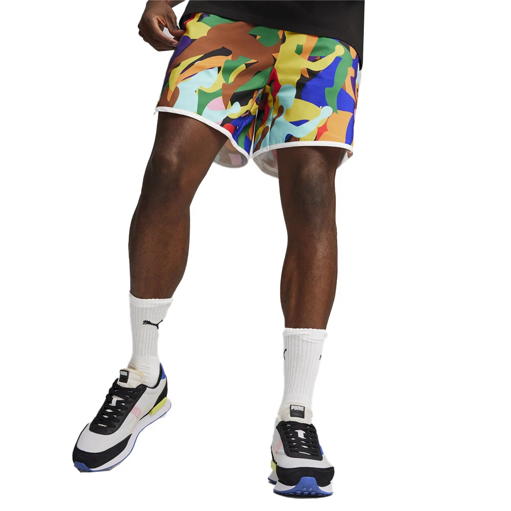 Classics Love Marathon 6 Inch Shorts Product Details Relaxed fit, above knee length Puma cat logo high density on wearer's left side Medium rise Elastic waistband with external drawcord for customized comfort 100% Polyester Represent the Puma Love Marathon in these all-over print commemorative shorts. The relaxed-fit shorts are above-knee length, have side-seam pockets, the Puma Cat logo on the left side, and a bright and bold all-over running print. Additional Details Color: Multi Occasion: Casual Gender: Mens Age: Adult Brand: Puma