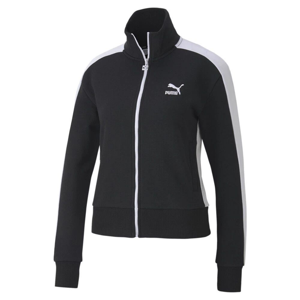 Classics T7 Full Zip Track Jacket Product Details Regular fit Stand-up collar Full zip closure Ribbed cuffs and hem 68% cotton, 32% polyester Some things were just made to last – like the classic T7 look, which gets its name from its signature 7 cm stripes. We've raided the PUMA archives to bring you this faithful replica of the T7 Women's Track Jacket, for timeless style that's as iconic now as it was back then. Additional Details Color: Black Occasion: Casual Gender: Womens Age: Adult Brand: Puma