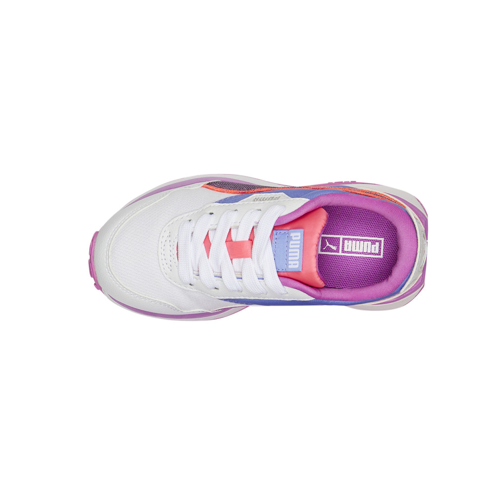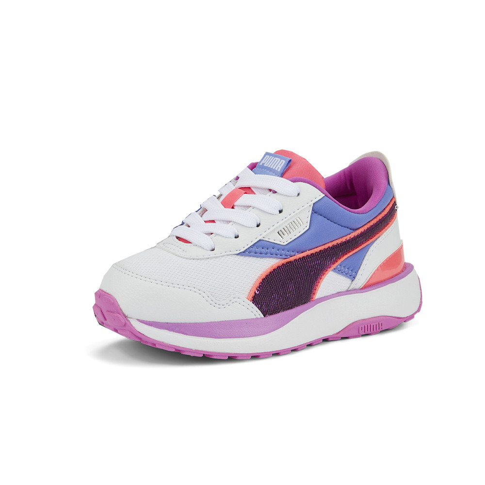 Cruise Rider Glitzy Glitter Lace Up Sneakers (Little Kid-Big Kid) Product Details Nylon upper with metallic details Lace up closure CMEVA midsole with TPU piece Rubber outsole Sequin PUMA Formstrip with color-shifting effect on the lateral side Drawing inspiration from vintage cars, our Cruise Rider is known for its stacked sole, sporty lines, and urban attitude. For this Glitzy edition, we've packed it full of playful textures and glam embellishments. Shiny TPU heel piece? Check. Metallic PUMA branding? Of course. Sequin Formstrip? You bet. And with vibrant colorblocking to boot, these kicks pop like no other. Additional Details Color: Pink, White Occasion: Casual Gender: Girls Age: Youth Brand: Puma