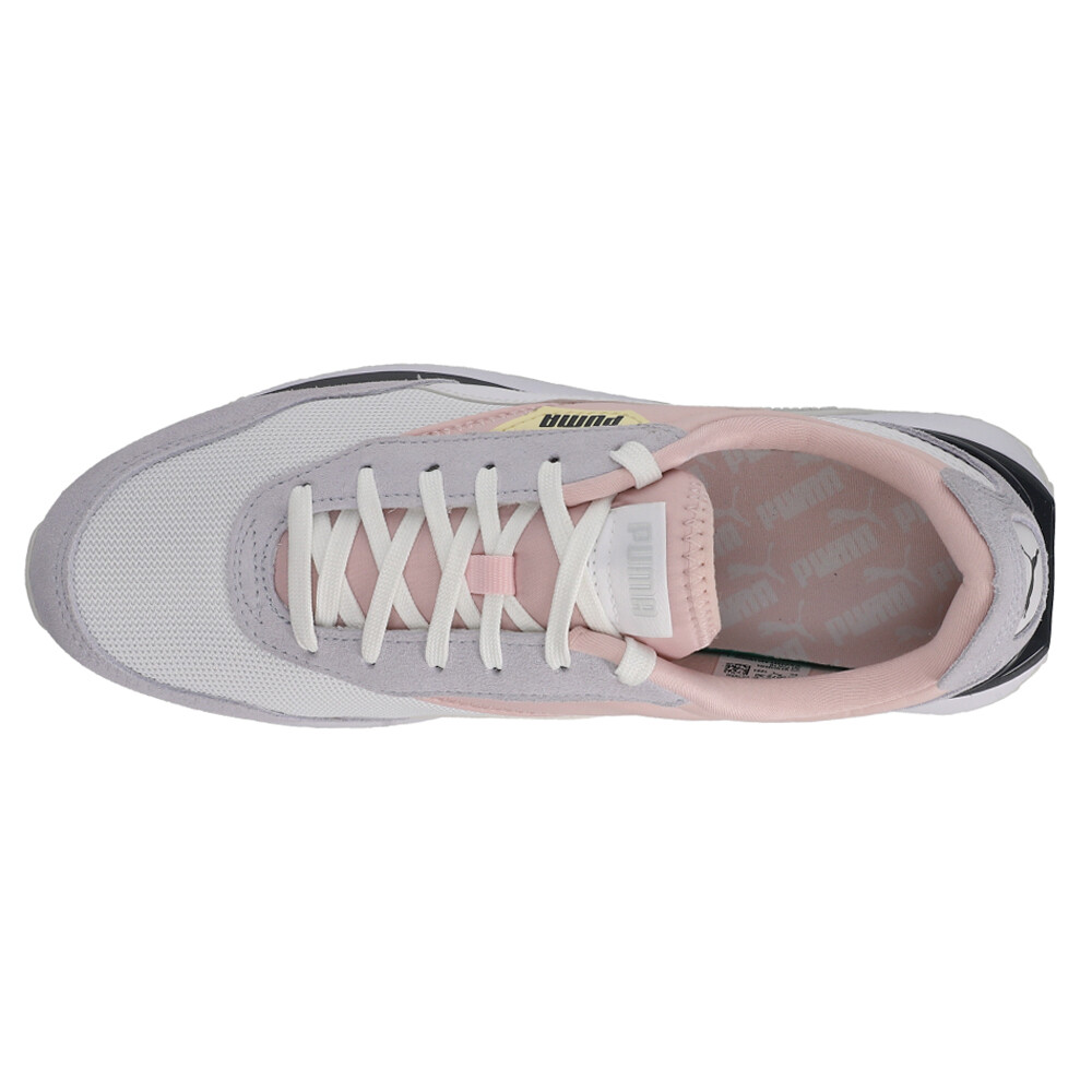 Cruise Rider Silk Road Lace Up Sneakers Product Details Mesh upper with suede and leather overlays Lace up closure Platform foam midsole for soft-cushioning Non-marking rubber outsole With fun colorblocking, a versatile material blend, and a stacked outsole, the PUMA Cruise Rider Silk Road stands out. Additional Details Color: Grey, Pink, White Occasion: Casual Gender: Womens Age: Adult Brand: Puma