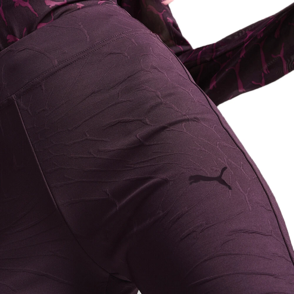 Dare To Raised Texture Leggings Product Details Tight fit Slit on internal side of legs 250gsm, double face jacquard Jacquard fabric with warped Cat design PUMA branding details Fearlessly stand out and make a bold style statement in the DARE TO collection. Body-mapped contouring provides a sleek silhouette as you stride in leggings that move as fast as you do. Additional Details Color: Purple Occasion: Casual Gender: Womens Age: Adult Brand: Puma