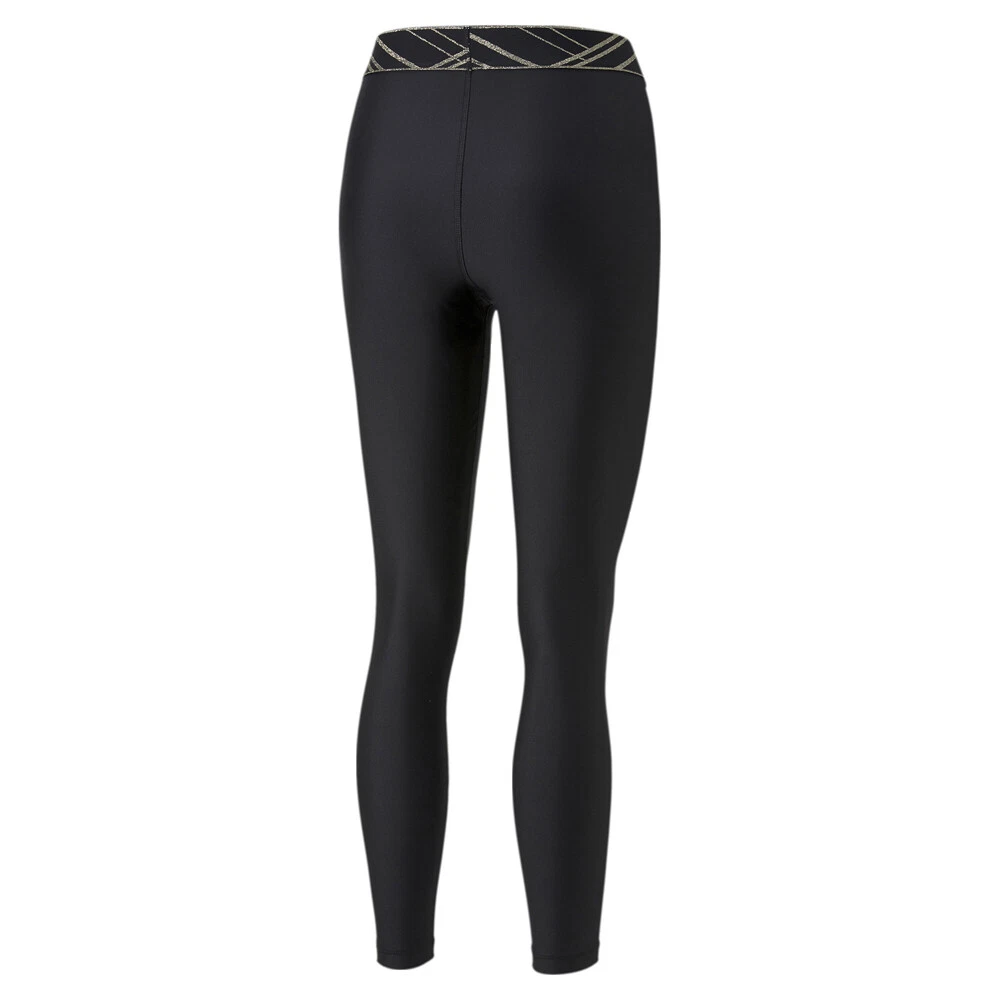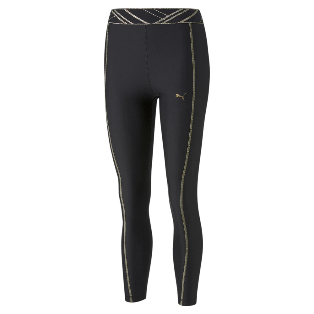 Deco Glam High Waisted Athletic Leggings Product Details High waisted Full length Performance technology designed to wick moisture 77% polyester, 23% elastane Add a little glitz to your workout with these beautiful tights from PUMA's Deco Glam collection. Combining the latest performance technology with good old-fashioned glamour, they offer maximum comfort so you can focus on beating your personal best, and feature metallic seams and details for guaranteed razzle-dazzle. Additional Details Color: Black Occasion: Casual Gender: Womens Age: Adult Brand: Puma