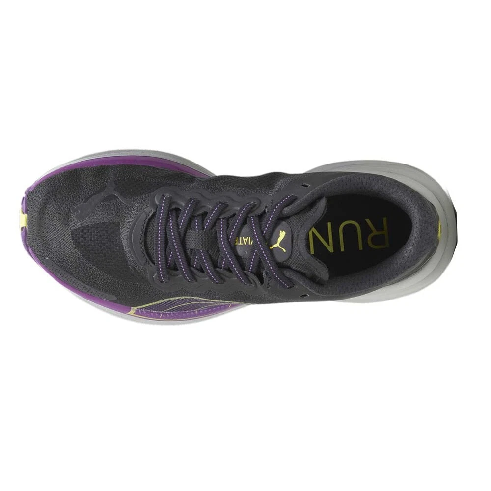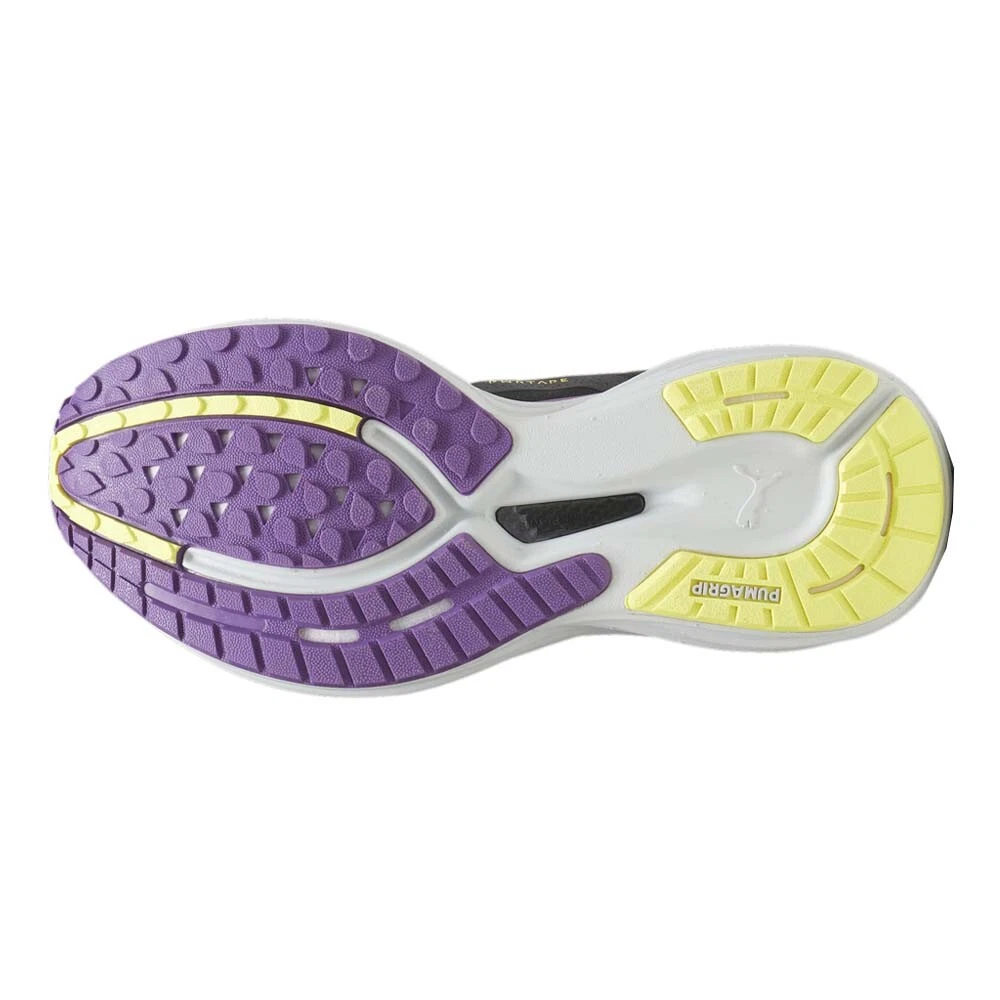 Deviate Nitro 2 Running Shoes Product Details Breathable mesh upper Reflective design elements Thermoplastic polyurethane heel spoiler Best for: Neutral pronators Heel-to-toe drop: 6mm The Deviate NITRO 2 – just like v1, only improved. It’s the max cushion, max performance running shoe that makes going faster even easier. The update includes NITRO Elite foam for improved responsiveness, a reworked collar to reduce heel slip, and a lighter, asymmetrical base that works better with your body across all distances – be it short runs, marathons, and even ultras. We've outfitted this version with a PUMAGRIP ATR outsole for added durability as well as an upper with extra padding, so you can tackle runs all winter. Additional Details Color: Black, Purple Occasion: Casual Gender: Womens Age: Adult Brand: Puma