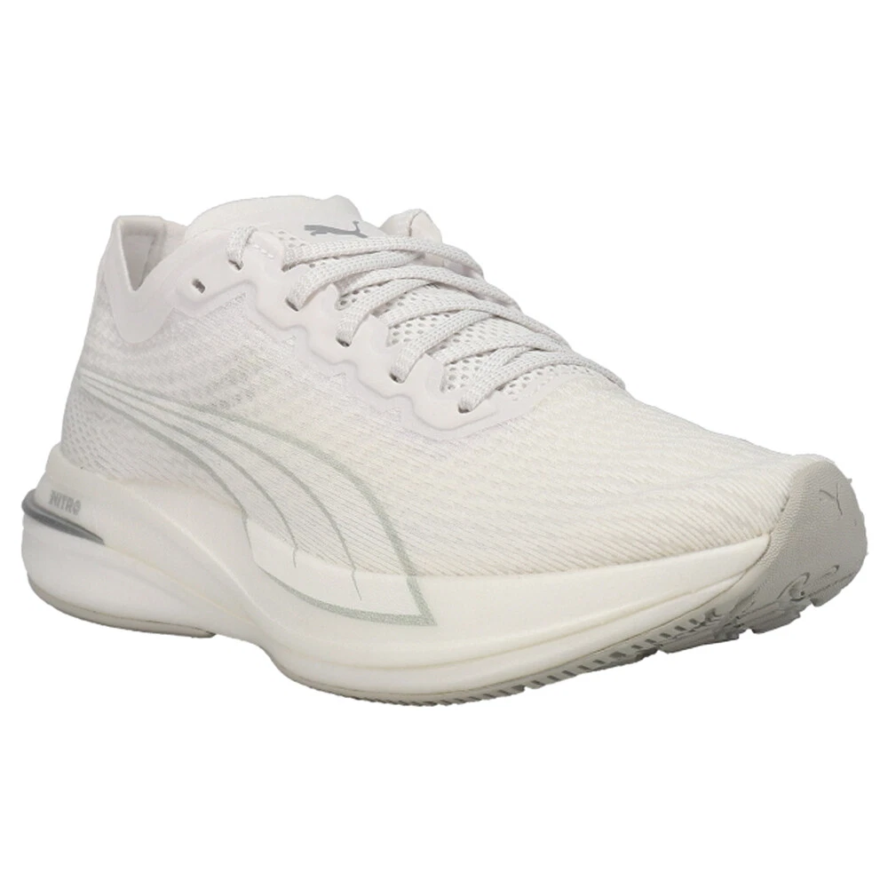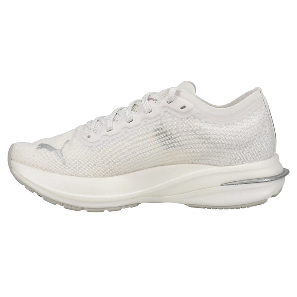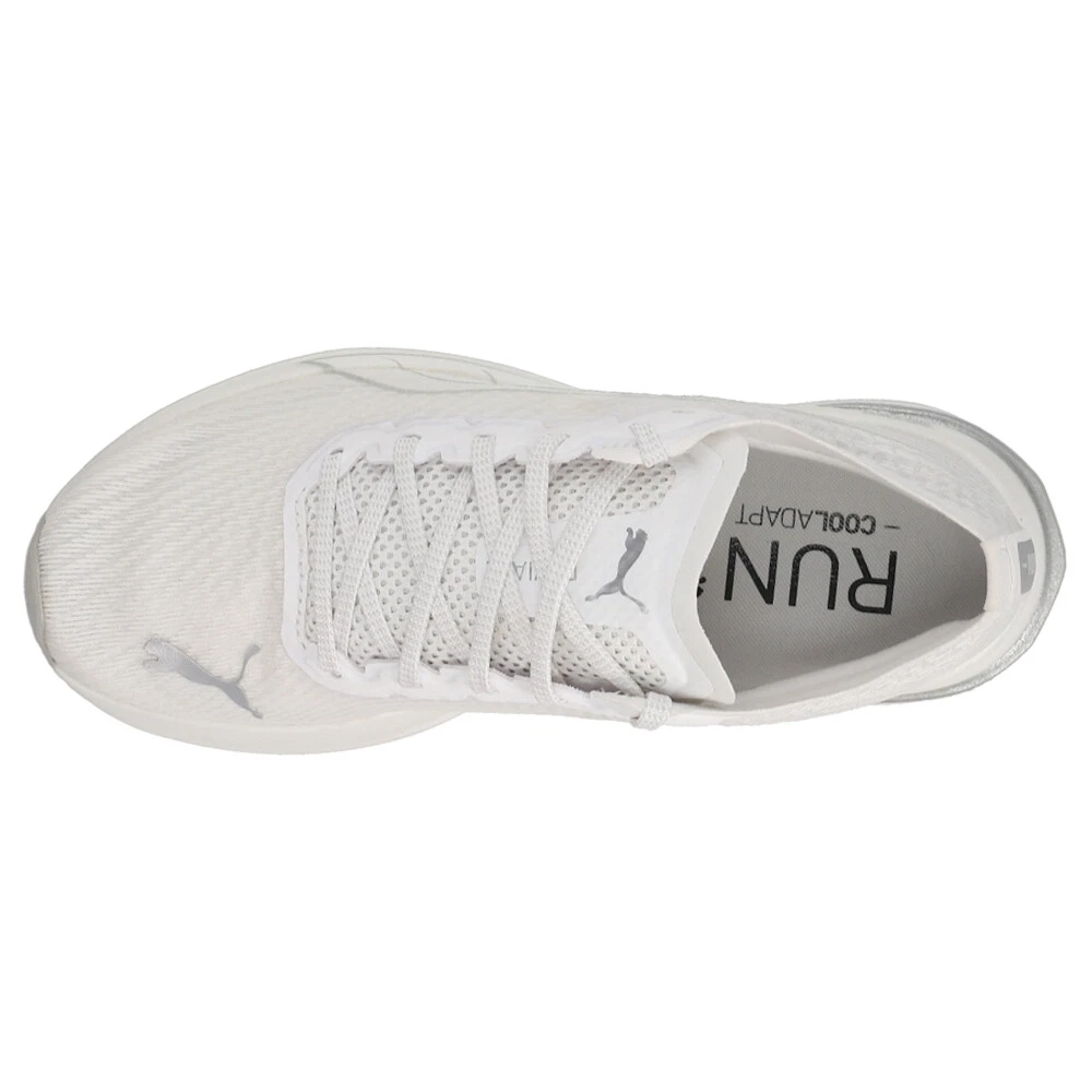 Deviate Nitro Cool adapt Running Shoes Product Details Mesh Upper Lace up closure Carbon fiber propulsion plate for maximum speed Full-length rubber outsole provides durable all-surface traction Thin suede lining for close-to-foot feel and reduced irritation This high-performance running shoe is packed with tech for the fastest runs. At the bottom, you get durable, PUMAGRIP traction and a carbon composite INNOPLATE. For the long runs that outlast the daylight, you get strategically placed 360 reflectivity, a comfortable COOLadapt finish, and lightweight NITRO foam for max cushioning with improved efficiency. Deviate NITRO is a breathable, form-fitting shoe for an effortless run. Additional Details Color: White Occasion: Casual Gender: Womens Age: Adult Brand: Puma