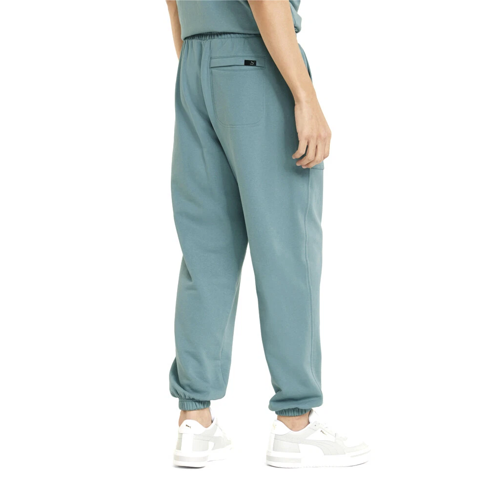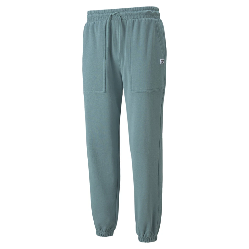 Downtown Drawstring Sweatpants Product Details Side and patch back pockets Elastic waistband with external drawcord and elastic cuffs Relaxed fit 100% cotton Take a day off from your office wardrobe with these relaxed-fit Downtown Men's Sweatpants. Super comfortable and adjustable, the needle-stitch cut line along the legs and pockets break up the silhouette in an inventive way. Tuck them into a pair of boots and wear with a chambray shirt and structured sweater on top for an outfit that toes the line between cool and casual. Additional Details Color: Blue Occasion: Casual Gender: Mens Age: Adult Brand: Puma