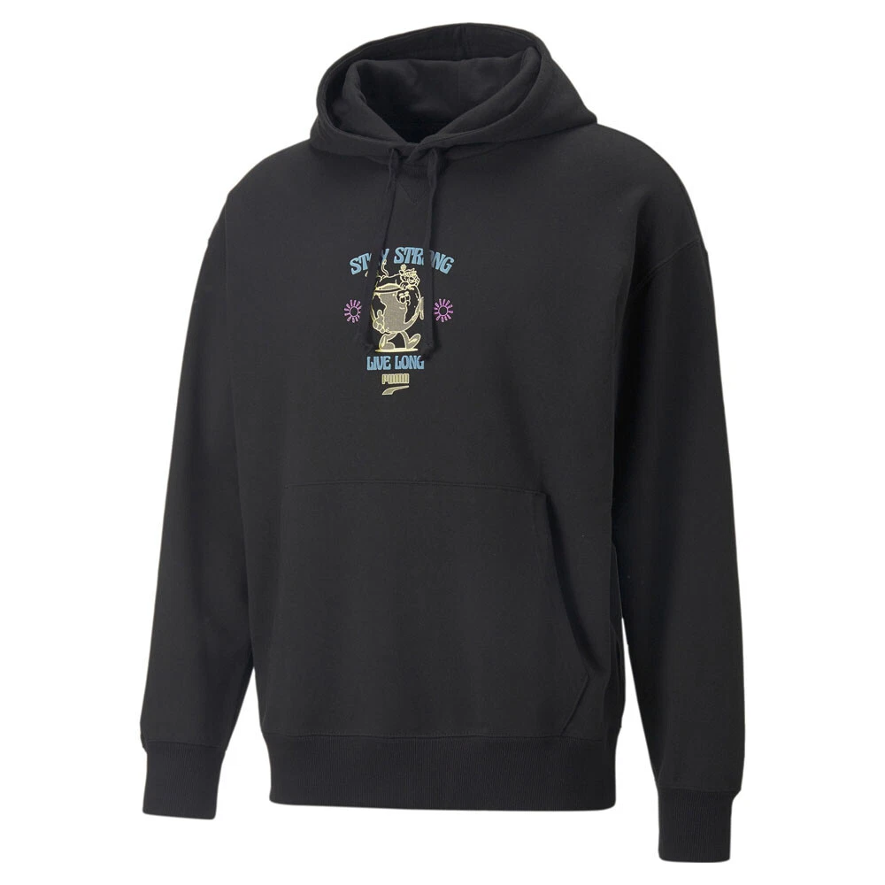 Downtown Graphic Pullover Hoodie Product Details Relaxed fit Multi-colour rubber suede puffer graphic Rib cuffs and him 100% cotton The worlds of street, skate, and sustainability collide in the Downtown collection, and this hoodie features a relaxed fit and vibrant graphics, perfect for chilly, all-day skate seshes. Additional Details Color: Black Occasion: Casual Gender: Mens Age: Adult Brand: Puma