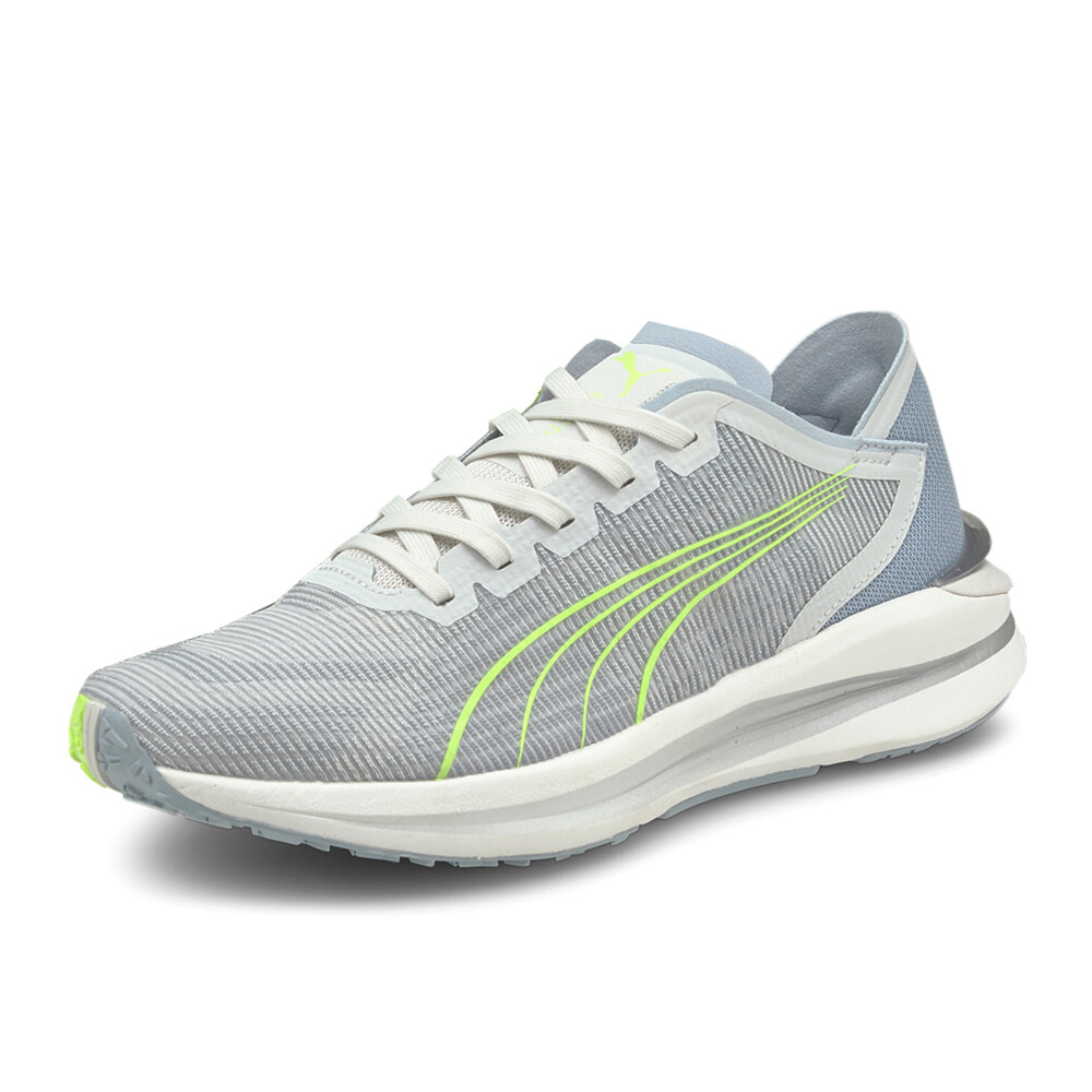 Electrify Nitro Running Shoes Product Details Synthetic upper Lace up closure EVA midsole solution provides instant cushioning Forefoot rubber provides optimal bending stiffness and maximum traction Whether you're a newbie runner or a veteran, you need a pair of shoes that will give you the responsiveness and cushioning you need and the versatility you demand. In the midsole of these shoes is NITRO FOAM, PUMA's advanced technology that provides responsiveness and cushioning in a lightweight package. On the outsole there's PUMAGRIP, our durable rubber compound that provides all-surface traction. Not to mention a dual-color mesh upper that provides breathability and a futuristic look. So, if you're looking to take your running to the next level, look no further. Additional Details Color: Grey Occasion: Casual Gender: Womens Age: Adult Brand: Puma