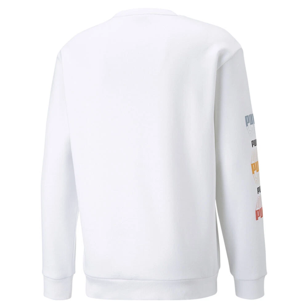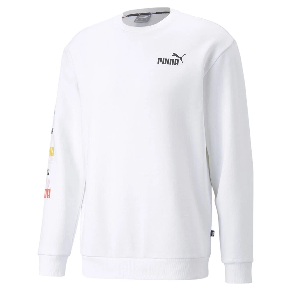Essential Logo Repeat Graphic Crew Neck Sweatshirt Product Details Regular Fit Ribbed crew neck Ribbed cuffs and hem Graphic print on chest PUMA No. 1 Logo rubber print The LOGO REPEAT collection gives us more of what we want, PUMA, taking the classic wordmark and placing it in a bold print that isn't afraid to repeat itself. Slip on this sweatshirt for a look that makes a strong statement. Additional Details Color: White Occasion: Casual Gender: Mens Age: Adult Brand: Puma