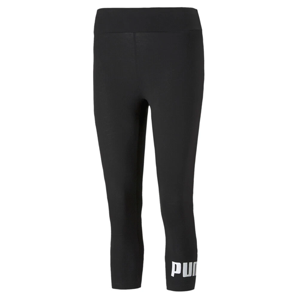 Essentials 3/4 Logo Leggings Product Details 3/4 Length Elastic waistband Tight fit 95% cotton, 5% elastane Put on essential PUMA style with these cool cropped leggings, made from sustainably-sourced cotton, with bold PUMA No.1 Logo branding at the leg. Additional Details Color: Black Occasion: Casual Gender: Womens Age: Adult Brand: Puma