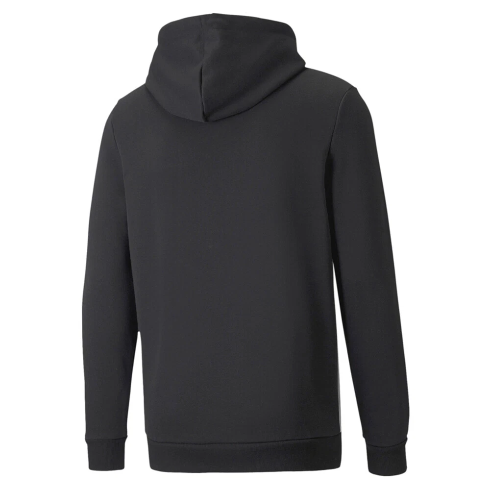 Essentials Colorblock Pullover Hoodie Product Details Regular fit Kangaroo pocket Hood with drawcords for an adjustable fit Jersey-lined hood 66% cotton, 34% recycled polyester Turn the dial up on your look with the Essentials+ Men's Hoodie. Statement style is created by bold color-blocking, so all eyes will be on you. Additional Details Color: Black Occasion: Casual Gender: Mens Age: Adult Brand: Puma