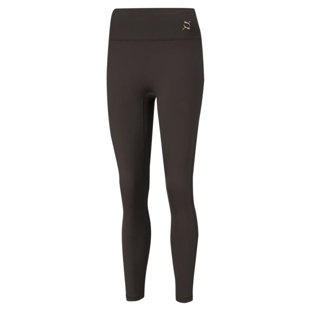 Exhale High Waist Athletic Leggings Product Details Tight fit Ribbed waistband Hidden pocket inside waistband at back for secure storage Metallic PUMA Cat Logo at left hip 100% polyester Mindful of the planet and mindful of your moves, the Exhale High Waist Leggings are the ultimate piece for your yoga practice. Created with 84% recycled polyester, this premium 4-way stretch fabric mirrors your every bend and flex, with dryCELL technology to wick away sweat. Combining design and function with thoughtfully placed, breathable mesh inserts, these tights give you an airy, cool fit. Additional Details Color: Brown Occasion: Casual Gender: Womens Age: Adult Brand: Puma