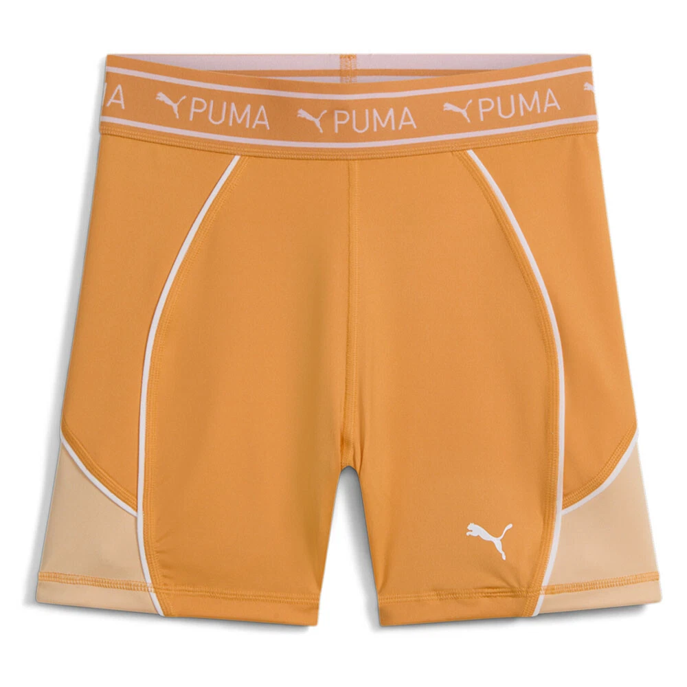 Fit Train Strong 5 inch Shorts Product Details Tight fit Cutlines inspired by the curvatures of PUMA's iconic Formstripe 5 inch Seam PUMA branded graphic EVERSCULPT: Shape-enhancing activewear Dial up your workout with the PUMA FIT 5 inch color block short tights. The tights feature moisture-wicking technology to keep you dry and are constructed with a shape-enhancing fabric cut to support your body's contouring without restricting your movement. Additional Details Color: Orange Occasion: Casual Gender: Womens Age: Adult Brand: Puma