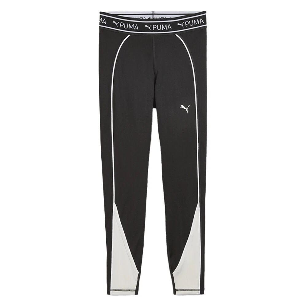 Fit Train Strong 7/8 Athletic Leggings Product Details High cut elastic waistband Forward-facing seams 7/8 Length Duochrome colourblock 89% polyester, 11% elastane Dial up your workout with these colourblock tights. We've taken this regular silhouette and added some aesthetic details to it to give you the confidence we all need when we hit the gym. Get ready to look and feel your best in this pair of sweat-wicking tights. Additional Details Color: Black Occasion: Casual Gender: Womens Age: Adult Brand: Puma