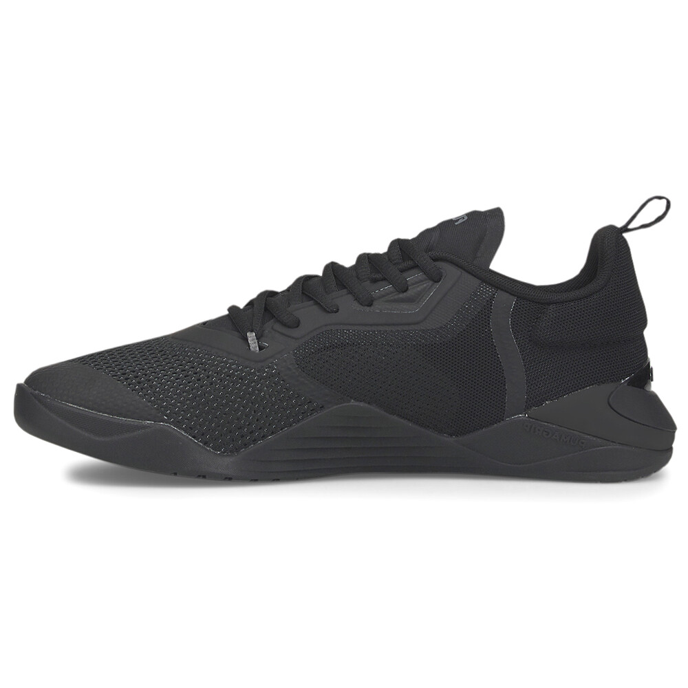 Fuse 2.0 Training Shoes Product Details Textile upper Thermoplastic polyurethane heel clip for enhanced heel support Profoam Ethylene-vinyl acetate midsole with internal stability Fuseflex vertical flex grooves on outsole provide improved metatarsal foot splay Pumagrip rubber outsole for?maximum traction and durability during training movements We worked with professional athletes to amplify three key training attributes—stability, fit, and traction. The Fuse 2.0 features increased rubber for enhanced stability, including higher sidewall coverage to ensure traction and grip. The streamlined upper construction provides durability for rope climbs, while a lightweight thermoplastic polyurethane heel clip is designed for handstand push-ups. And all this innovation comes in one sleek package to help you reach your ultimate training potential. Additional Details Color: Black Occasion: Casual Gender: Mens Age: Adult Brand: Puma
