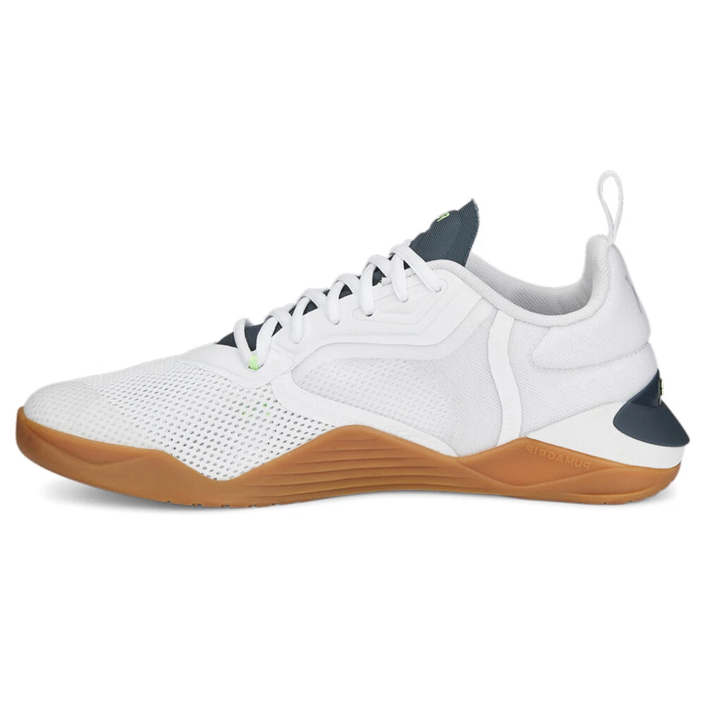 Fuse 2.0 Training Shoes Product Details Internal midsole for low-to-ground shock absorption FUSEFLEX vertical grooves to provide improved metatarsal foot splay New last for a wider, stronger stance TPU clip wrapped around heel for additional support Featuring a no-sew construction for enhanced durability, PUMAGrip rubber for traction, PUMAFlex metatarsal grooves for foot splay and a heel clip for minimising unwanted movement, these track-ready trainers take your progress up a notch. Additional Details Color: White Occasion: Casual Gender: Mens Age: Adult Brand: Puma