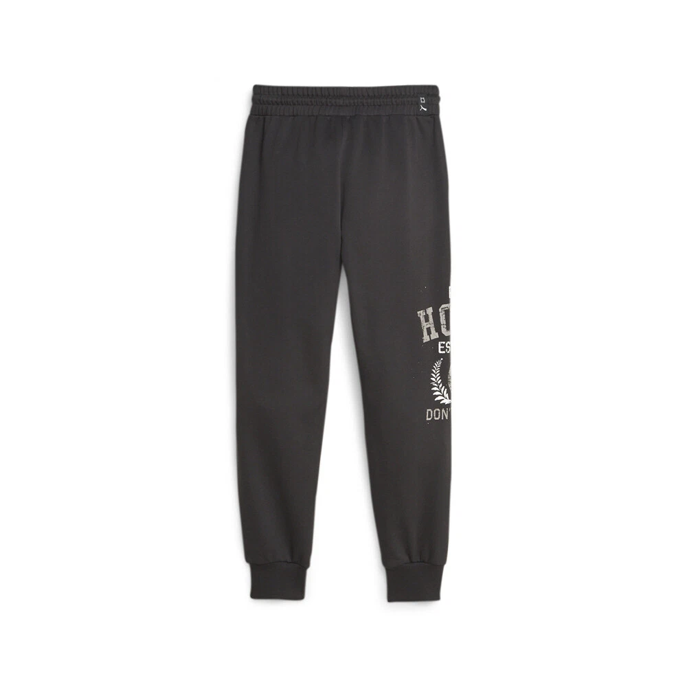 Graphic Booster Basketball Pants Product Details Regular fit Elastic waist with drawcords Side pockets Ribbed cuffs Graphic Puma Hoops print on the lower right leg/Puma Cat Logo on the left thigh Warm up or simply hang out in classic basketball style with these comfy, French terry sweatpants. They feature a large, eye-catching print on the lower leg that adds a bold mix of colors. Additional Details Color: Black Occasion: Casual Gender: Mens Age: Adult Brand: Puma