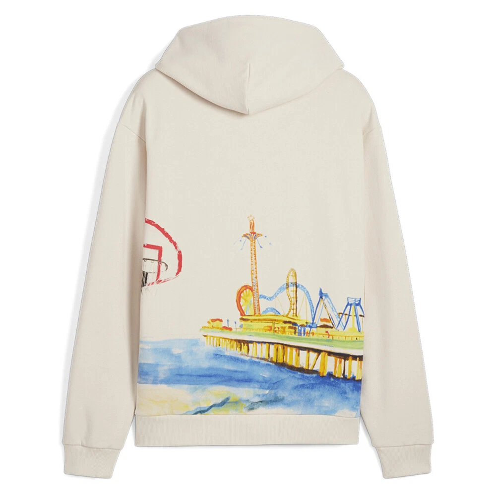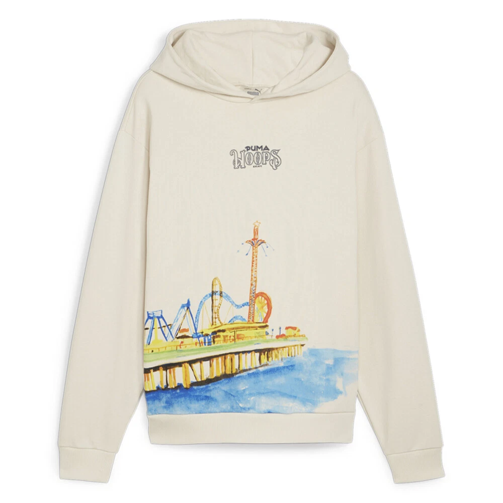 Hoops Showtime Graphic Hoodie Product Details Regular fit 400 grams per square meter, French Terry Fixed hood Puma Hoops branding adds a sporty and stylish touch 100% Cotton Push past your opponents and sink shots in style with this hoodie. Crafted for the court, its soft yet durable build and bold Puma branding lets you move freely and make an impact, shot after shot. Additional Details Color: Beige Occasion: Casual Gender: Mens Age: Adult Brand: Puma