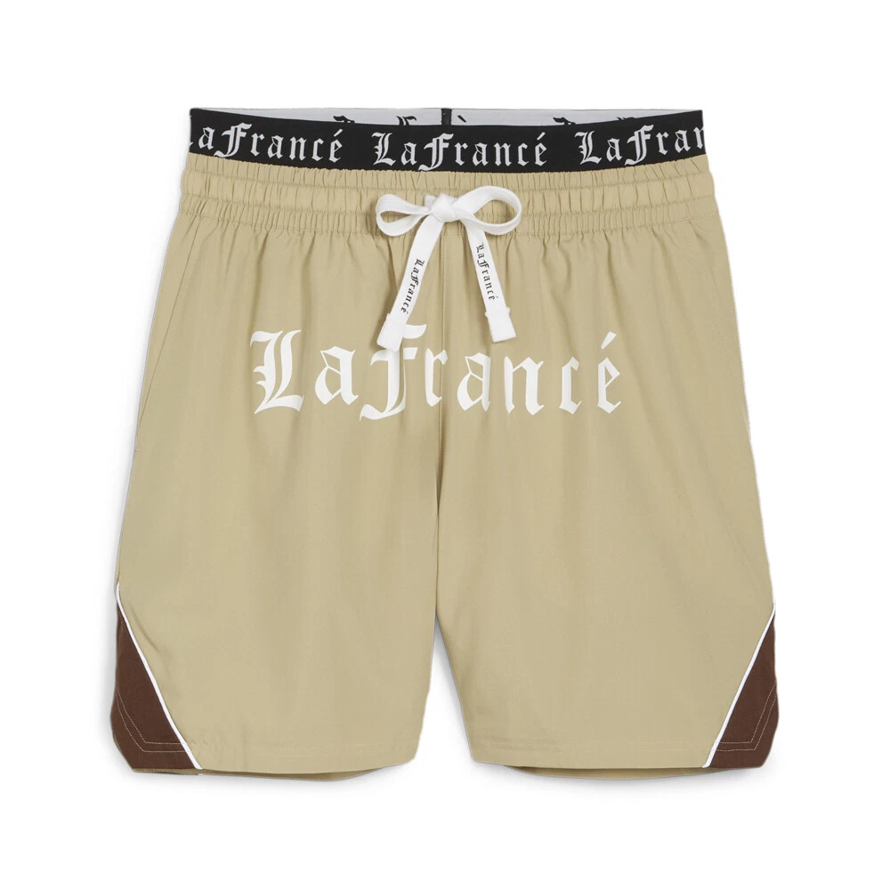 Hoops X Lafrance Woven Shorts Product Details PUMA HOOPS x LaFrancé branding Zip pockets on each side for storage Mid rise waistband Regular fit 100% polyester PUMA HOOPS and LaMelo Ball's LaFrancé brand have teamed up for a capsule collection that takes the superstar's signature style and gives it a high-end approach. The result? Styles like these shorts with extravagant branding. Additional Details Color: Beige Occasion: Casual Gender: Mens Age: Adult Brand: Puma