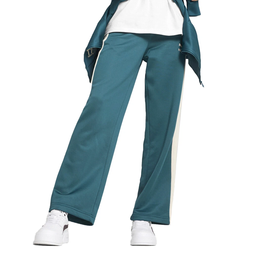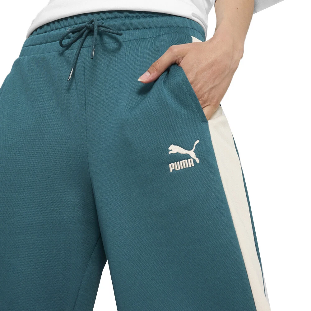Iconic T7 Straight Leg Drawstring Track Pants Product Details Comfort fit Side pockets 320 gsm, French terry T7 panel inserts Elasticated waistband with adjustable drawcords Smoothly slide into versatile style. These ultra-comfortable knitted track pants move with you, their stretch fabric contours to your shape. Subtle side pockets and an adjustable waistband ensure easy-going luxury wherever you wander. Effortless, iconic, unmissable. Additional Details Color: Green Occasion: Casual Gender: Womens Age: Adult Brand: Puma