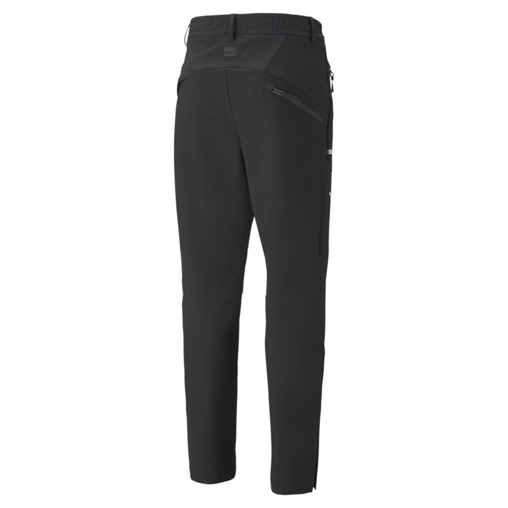 KSO Seasons X Running Pants Product Details Slim fit Belt loops and hook-and-loop closure Articulated knees 90% polyester, 10% elastane Complete with rainCELL technology to keep you protected from the weather on the wettest days, and articulated cutlines that give you a fuller range of motion, these pants are made for any and every runner. Additional Details Color: Black Occasion: Casual Gender: Mens Age: Adult Brand: Puma