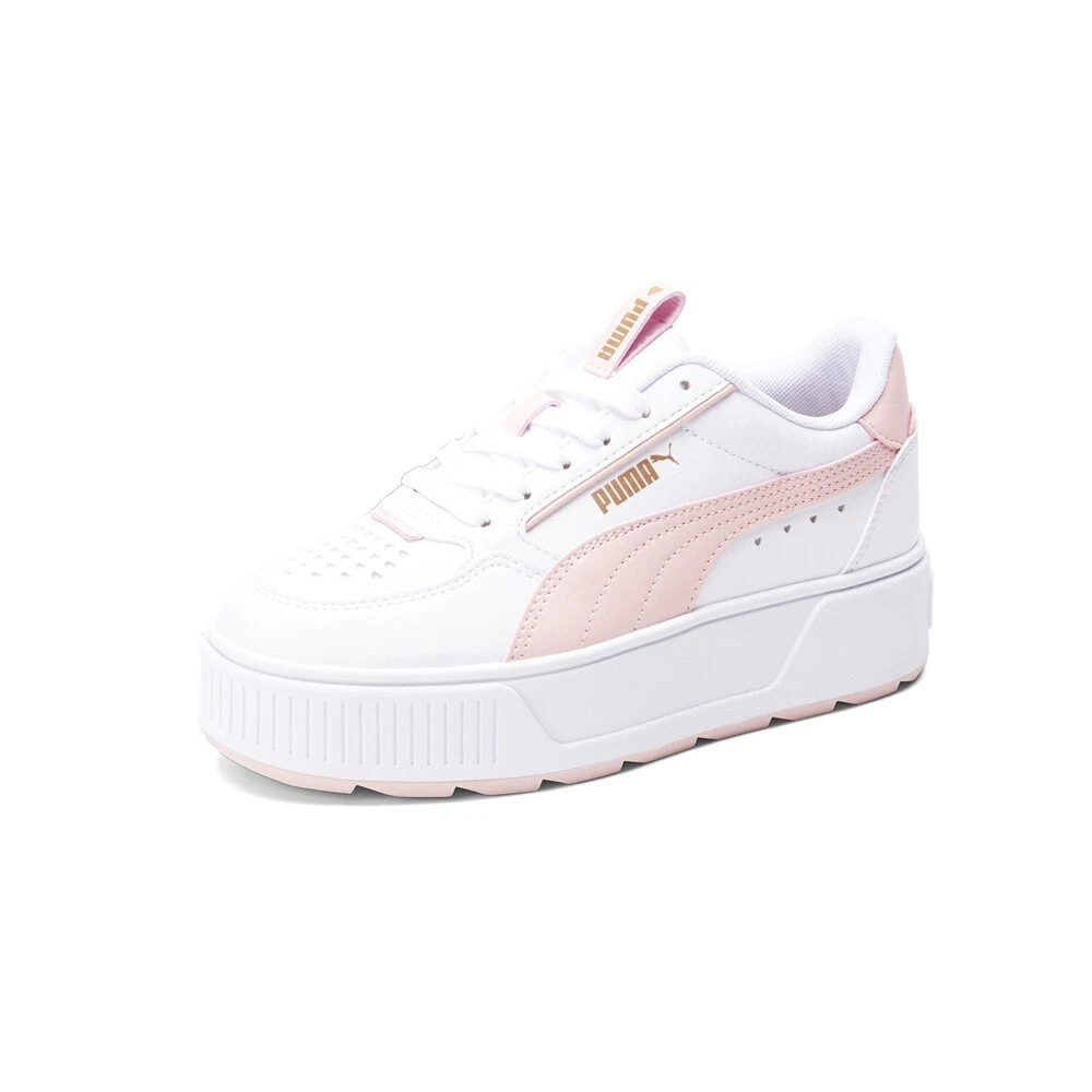 Karmen Rebelle Mini Hearts Platform Sneakers (Big Kid) Product Details Synthetic leather upper Lace up closure SoftFoam sockliner adds cushioning Thick textured rubber platform sole Complete the fit with PUMA Karmen Rebelle shoes. Featuring a smooth synthetic leather upper atop a platform sole, the Karmen Rebelle takes on a similar vibe to the platform shoes you know and love. A jagged sole adds a little character, distinguishing this sneaker as a standout fashion accessory. Additional Details Color: White Occasion: Casual Gender: Girls Age: Youth Brand: Puma