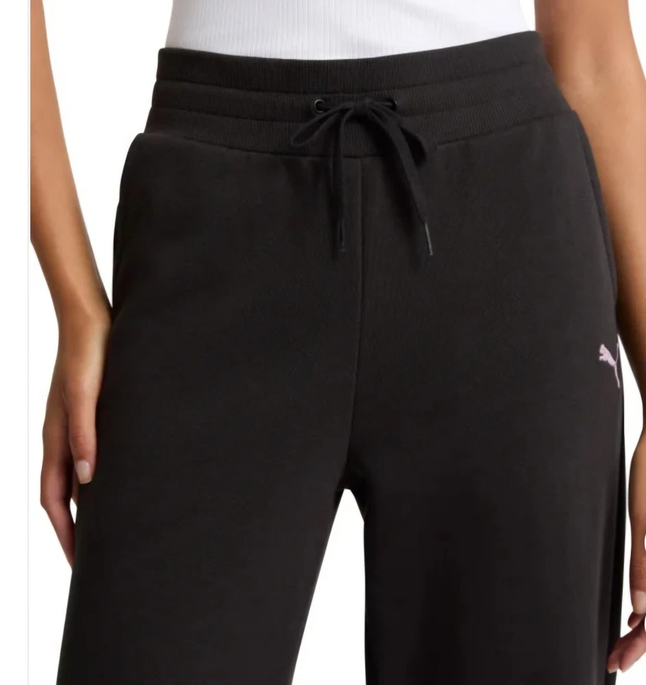 Elevate your activewear game with these Puma Ladies' Fleece Straight Leg Pants. The black color and solid pattern make them a versatile addition to your wardrobe. The pants are made of comfortable fleece fabric and feature a regular fit with a straight leg style. The pants are perfect for winter, fall, and spring seasons and come with convenient pockets for your essentials. They are machine washable for easy maintenance. The pants are ideal for sports enthusiasts and have a logo theme to showcase your love for the brand. Available in size L, these sweatpants are a must-have for any woman's activewear collection.