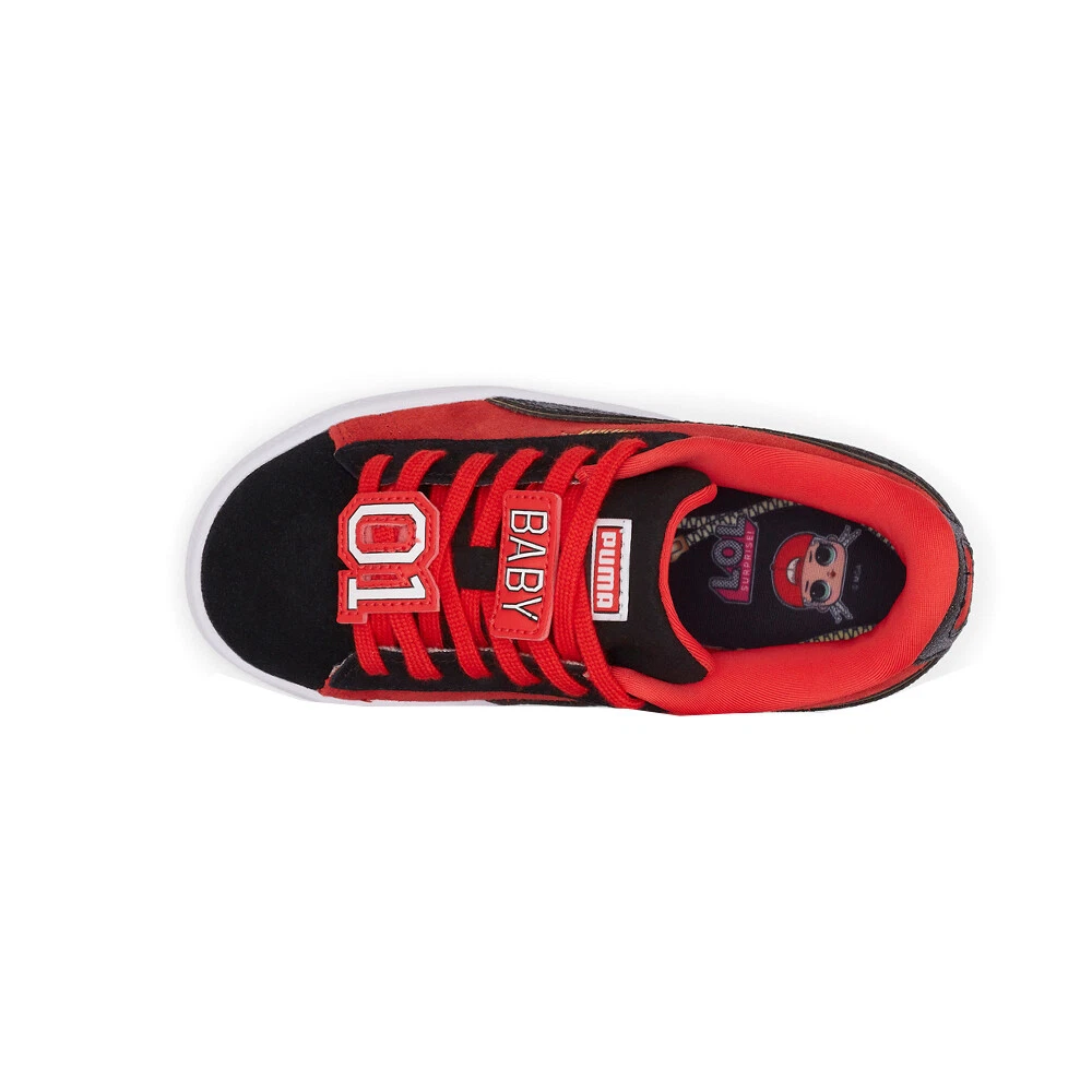 Laughing Out Loud Surprise x Suede Lace Up Sneakers (Toddler-Little Kid) Product Details Suede upper Lace up closure Cushioned insole Rubber outsole Calling all the little queens to play! Let your little ones enjoy hours of excitement and surprise with the PUMA Suede Laughing out loud Surprise. PUMA and Laughing out loud SURPRISE! have joined hands to help your tiny dolls have fun in style and comfort. Decked up with bold colors and authentic graphics, these sneakers will give your baby girls’ rotation a playful makeover. Watch your tiny girls make big strides with the PUMA Suede Laughing out loud Surprise. Additional Details Color: Black, Red Occasion: Casual Gender: Boys Age: Toddler Brand: Puma