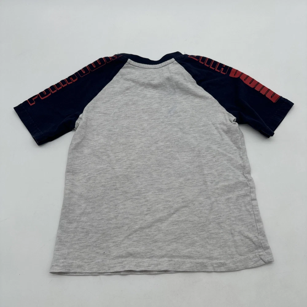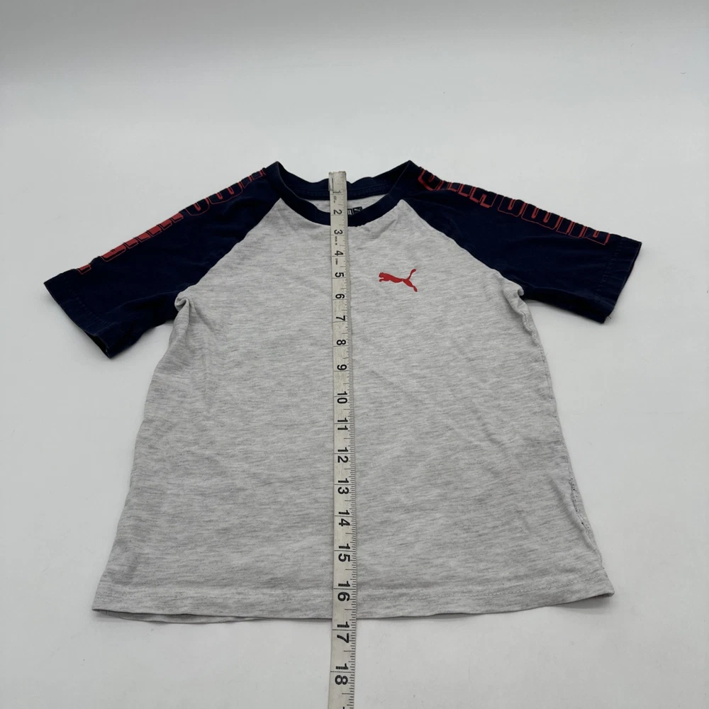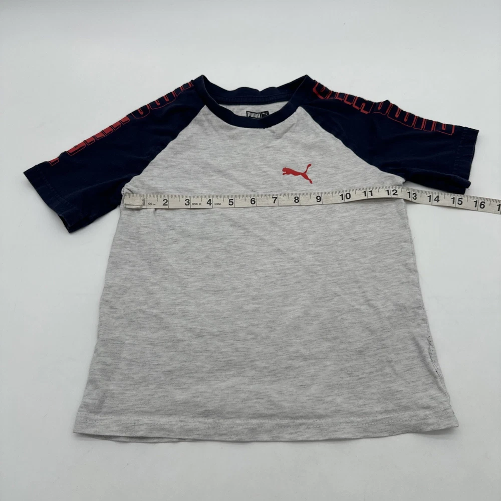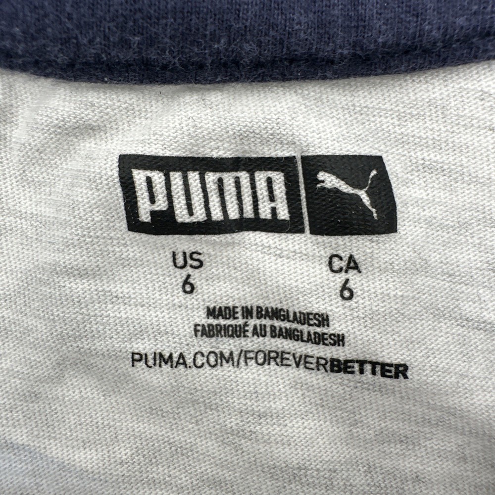 The Puma Long Sleeve Shirt for Youth Boys in size 6 features a graphic print logo in multicolor, making it a stylish and casual option for young boys. With a crew neck and long sleeves, this pullover shirt is made from a blend of polyester and cotton for easy care. The regular fit and comfortable design make it perfect for everyday wear, while the Puma brand adds a touch of sporty style to the top. Ideal for active boys who want to showcase their favorite logo while staying comfortable and stylish. *Check the images above for the flaws and measurements of the item.