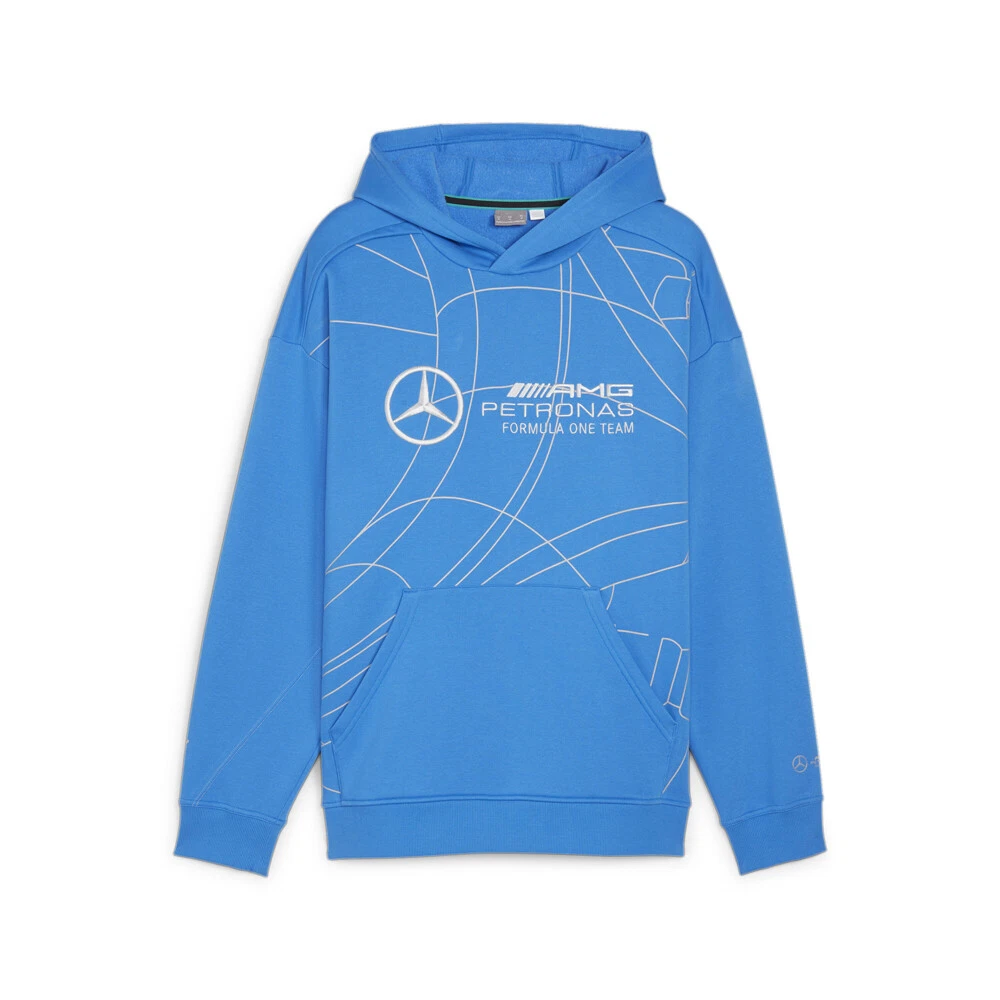 Mapf1 Statement Hoodie Product Details Regular Fit Crewneck with hood Embroidered Mercedes-AMG PETRONAS logo on the chest with supporting graphic Mercedes-AMG PETRONAS badge embedded on the front Puma Cat Logo on the sleeve This hoodie combines the unstoppable performance and the timeless style of Mercedes-AMG PETRONAS. Innovatively designed for fans of racing, it features the powerful team logo embroidered on the chest with supporting graphics. Additional Details Color: Blue Occasion: Casual Gender: Mens Age: Adult Brand: Puma