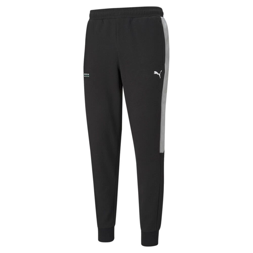 MAPF1 T7 Sweatpants Product Details T7 silhouette Elastic waistband Colourblocking at lower leg 77% cotton, 23% polyester Send your wardrobe off to the races with these Mercedes-AMG Petronas Motorsport F1 T7 Sweatpants. This celebration of excellence in motorsport features colour-blocking that mirrors the fresh, contemporary colour-blocking of the T7 Sweat Jacket and pulls together a look that is part iconic PUMA, part high-octane thrills and all streetwise attitude. Additional Details Color: Black Occasion: Casual Gender: Mens Age: Adult Brand: Puma