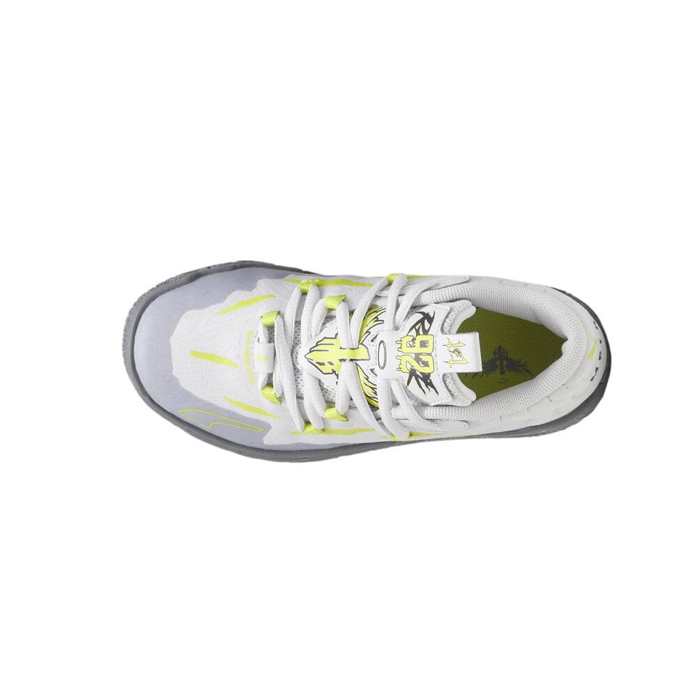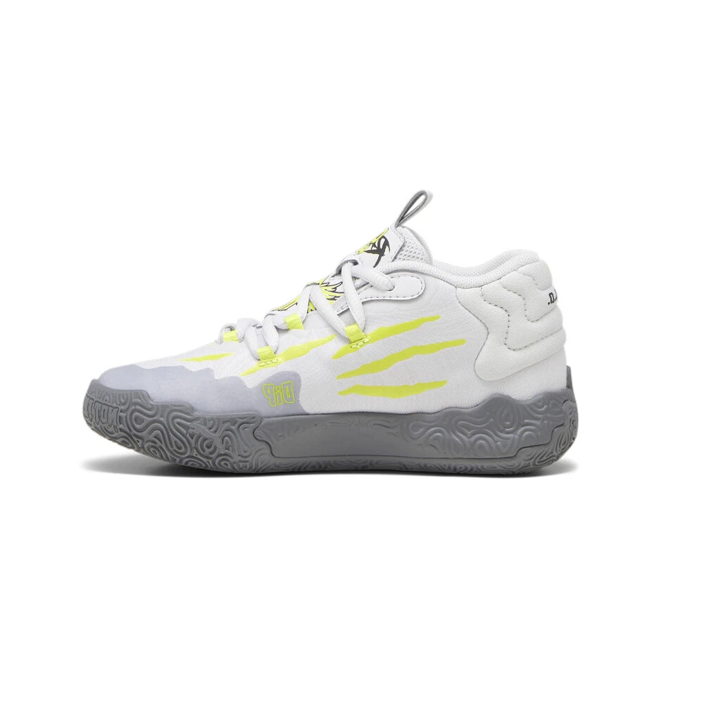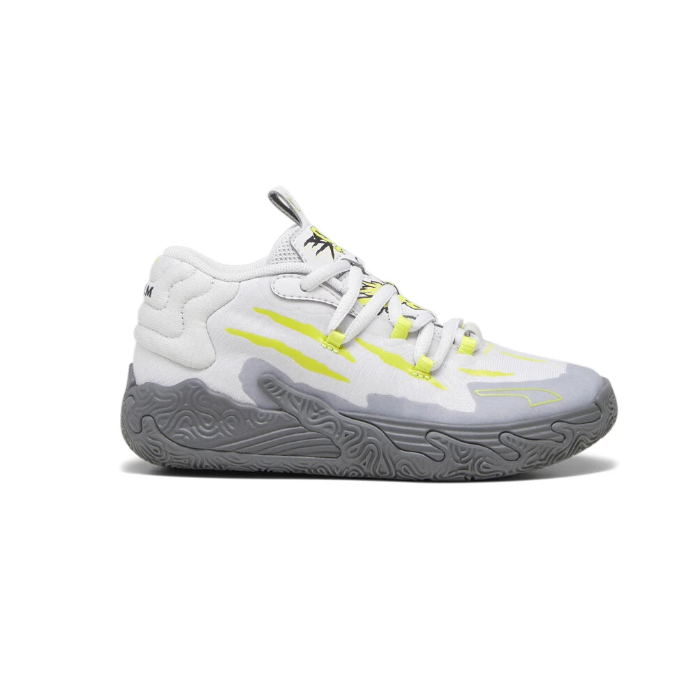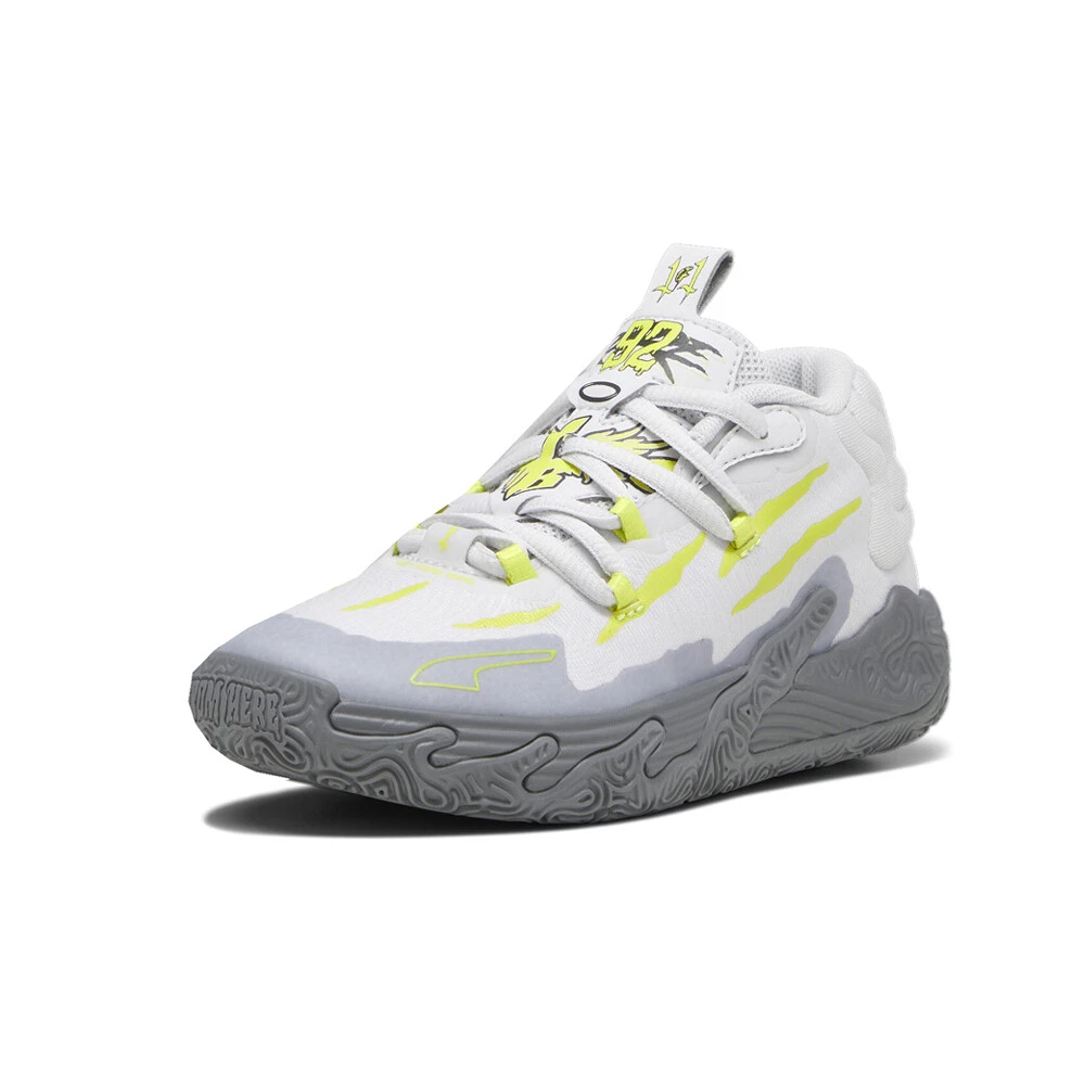 MB.03 Hills Basketball Shoes (Little Kid-Big Kid) Product Details Mid-cut boot Mesh upper Rubber outsole MB branding Puma Kids: Recommended for young kids between 4 and 8 years MB’s third signature shoe MB.03 takes a trip to the never before seen alternative universe that is the Melo world. Highlighted by slime inspired rubber wrap-ups and an engineered knit upper with scratch cutouts, the MB.03 is truly Not From Here. The slime sole and space-age Puma Hoops tech, including Nitro foam, make tournament ready look interplanetary. Additional Details Color: Grey Occasion: Casual Gender: Boys Age: Youth Brand: Puma