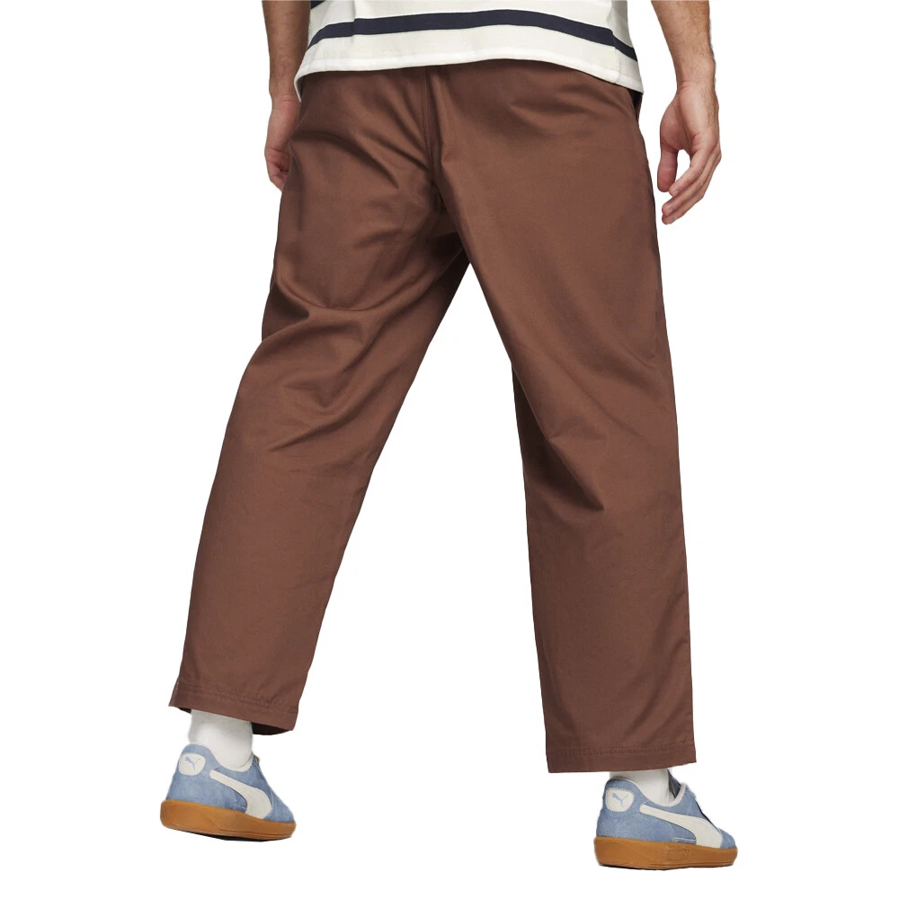 MMQ Chino Flat Front Pants Product Details Relaxed fit 236 grmas per square meter, twill weave Metal zip fly and button closure Side pockets and back welt pocket Coin pocket MMQ = "Macht’s mit Qualität." Translated from German, it means "Made with Quality" and represents the finest in Puma’s designs and materials. Minimalistic aesthetics, contemporary silhouettes, with a passion for sophisticated details. These chino pants are made with a sturdy twill weave fabric, feature two side pockets and come in a relaxed fit. Additional Details Color: Brown Occasion: Casual Gender: Mens Age: Adult Brand: Puma