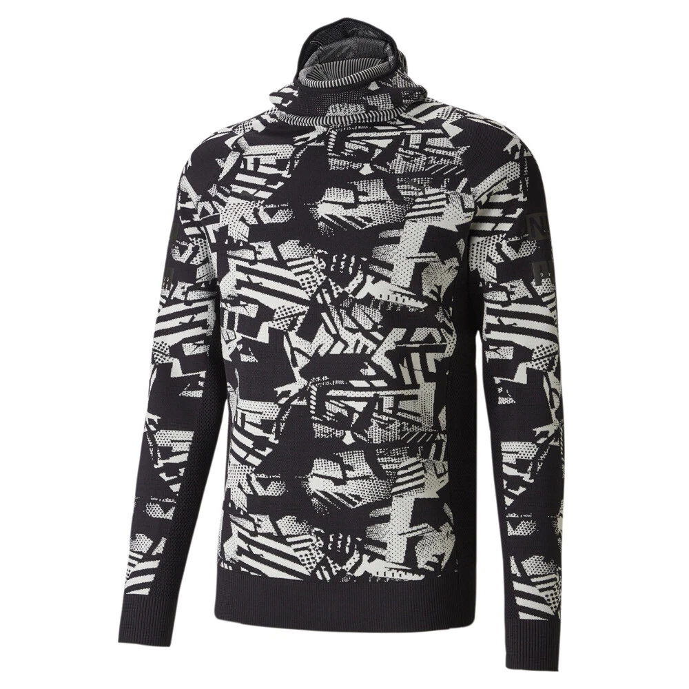 Nemen X Scuba Graphic Long Sleeve Sweatshirt Product Details Regular fit Mesh structure beneath sleeves and side panels Balaclava-inspired hood PUMA x NEMEN branding details 77% polyester, 19% nylon, 4% elastane The PUMA x NEMEN collection combines the worlds of sportswear and extreme functionality, with technical materials giving a look that’s unlike anything else in the PUMA lineup. This sweatshirt has an engineered all-over print, as well as a balaclava-inspired hood with a smaller than usual opening. Additional Details Color: Black Occasion: Casual Gender: Mens Age: Adult Brand: Puma