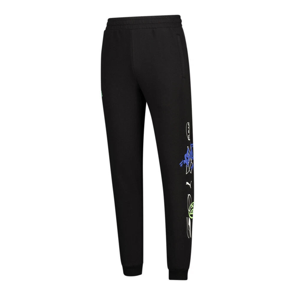 NFS X Sweatpants Product Details Regular fit Elastic waistband Dual side pockets 68% Cotton, 32% Polyester Motorsport-inspired style for the digital streets is no sweat in these pants from PUMA. Merging the distinctive visuals of Need for Speed with the big cat's nose for design, they'll rev up any casual wardrobe. Additional Details Color: Black Occasion: Casual Gender: Mens Age: Adult Brand: Puma