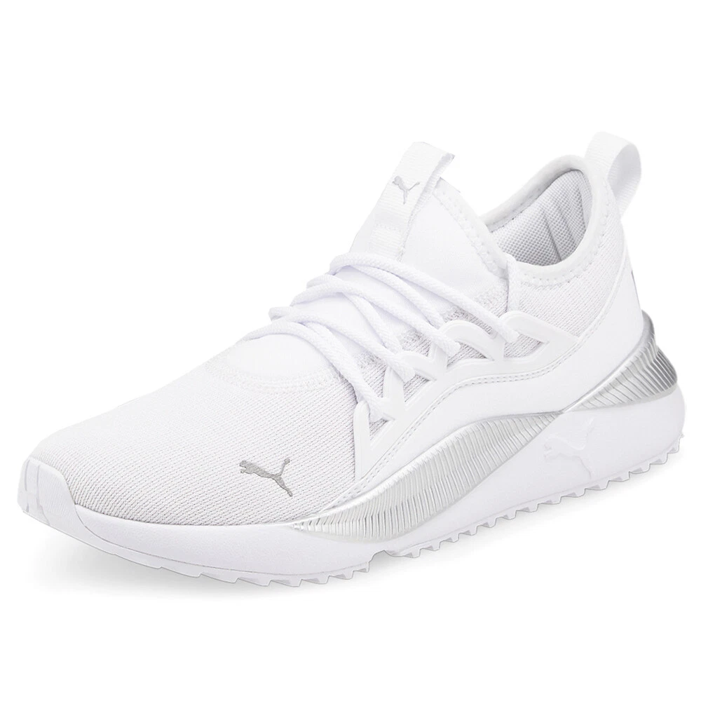 Pacer Future Allure Lace Up Sneakers Product Details Mesh upper Lace up closure EVA midsole Rubber outsole The future sure looks comfy in the Pacer Future women's sneaker from PUMA. With a breathable knit mesh upper flanked by a midfoot lace-through cage for added support, this slip-on sneaker also features a sock collar and PUMA-branded pull tab on the tongue. The EVA midsole and rubber outsole provide lightweight support for greater energy return every step of the way. Additional Details Color: White Occasion: Casual Gender: Womens Age: Adult Brand: Puma