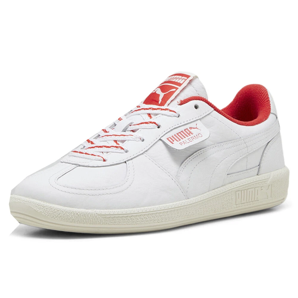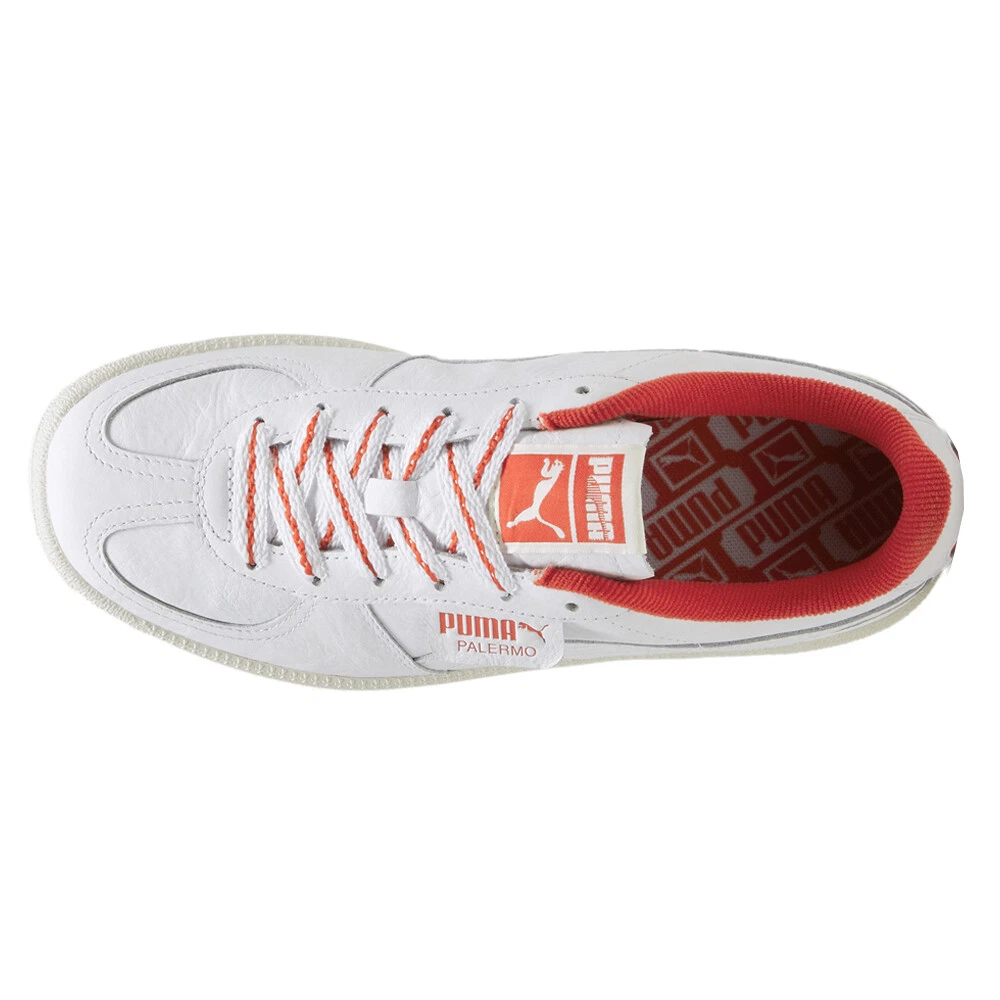 Palermo Lady Court Lace Up Sneakers Product Details Leather upper Textile back tongue, lining, and sockliner Full rubber outsole Lace closure Leather Formstrip on lateral sides Straight from the archives, it's the Puma Palermo. This classic terrace shoe is revived today with its signature T-toe construction. This female execution is inspired by the Lady Court line from the archive. Additional Details Color: White Occasion: Casual Gender: Womens Age: Adult Brand: Puma