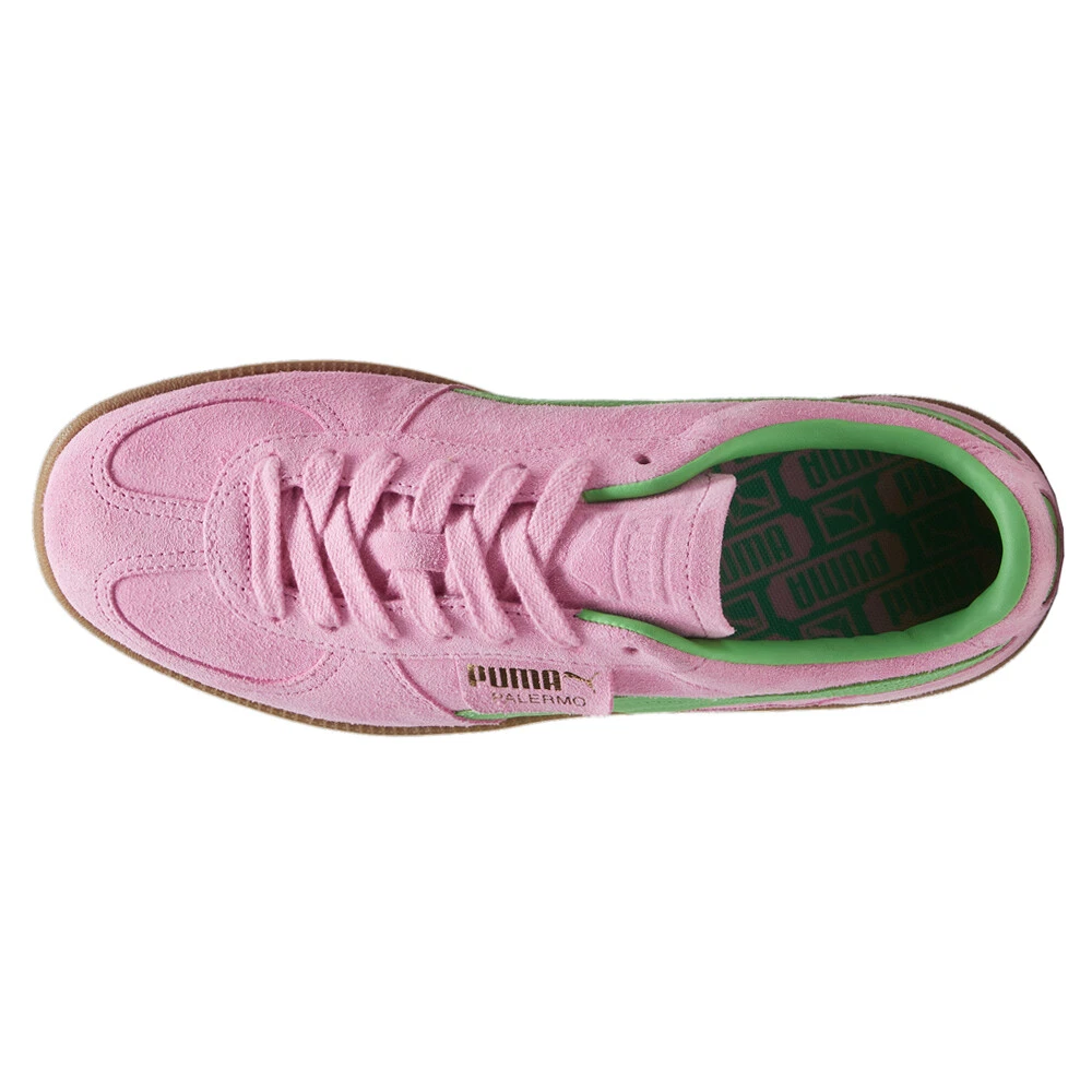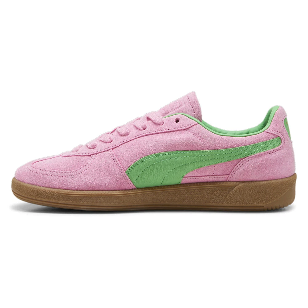Palermo Special Lace Up Sneakers Product Details Leather upper Textile sockliner Deboss and foil printed PUMA branding on quarter panel tab and heel cap Formstrip on lateral and medial sides Rubber outsole A terrace legend from our archives returns: The Palermo. The silhouette debuted back in the early '80s, where it quickly became a staple among the terrace crowds in British football stadiums. Now, we’ve brought it back for the fans. Like the original, the Palermo is complete with its signature tag at the upper, a T-toe construction, colorblocking details, and, of course, the classic gum sole. Additional Details Color: Pink Occasion: Casual Gender: Mens Age: Adult Brand: Puma