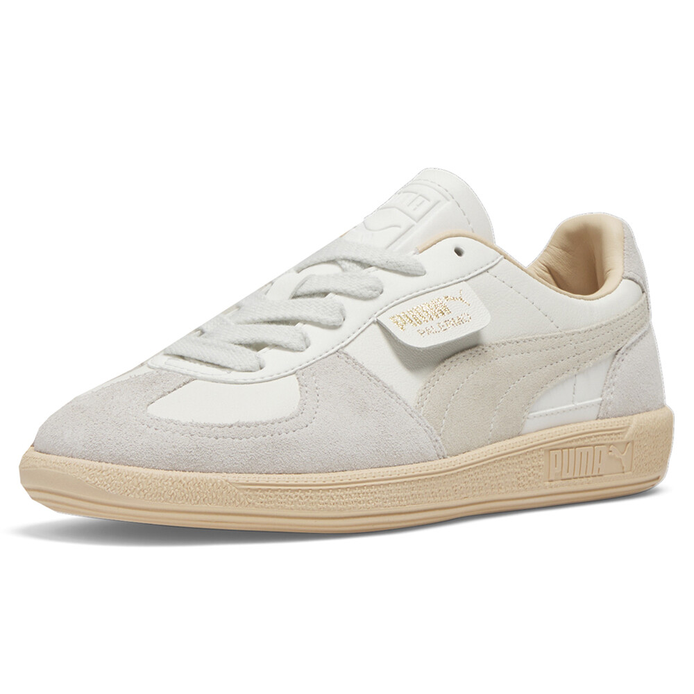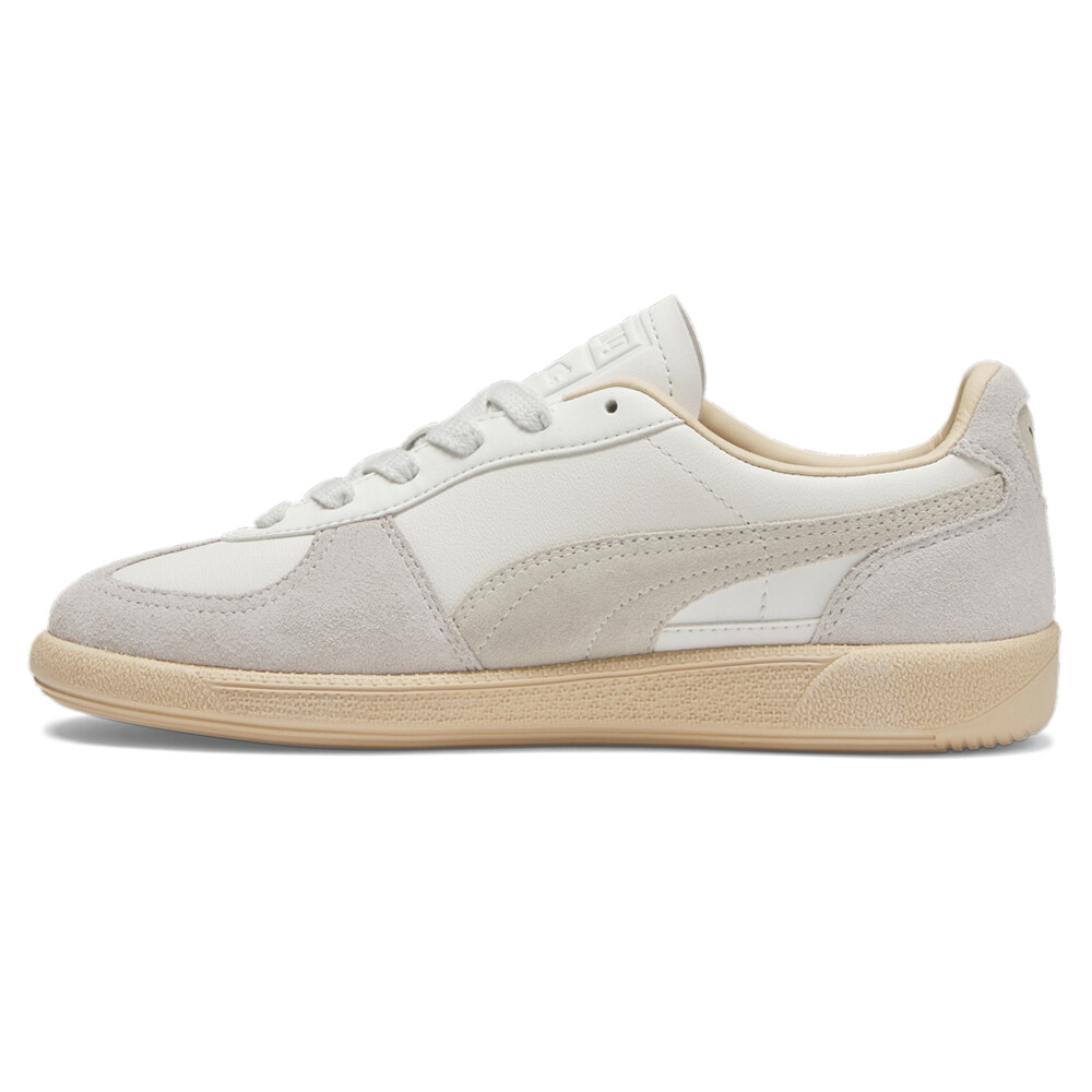 Palermo Lace Up Sneakers Product Details Leather and synthetic upper Lace up closure Mesh sockliner Rubber midsole Rubber outsole A terrace legend from our archives returns: The Palermo. The silhouette debuted back in the early '80s, where it quickly became a staple among the terrace crowds in British soccer stadiums. Now, we’ve brought it back for the fans. Like the original, the Palermo is complete with its signature tag at the upper, a T-toe construction, and, of course, the classic gum sole. This version has a leather base with a suede Formstrip and suede overlays. Additional Details Color: White Occasion: Casual Gender: Womens Age: Adult Brand: Puma