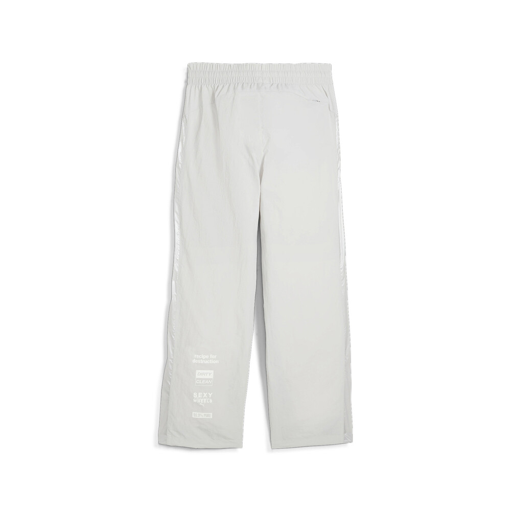 Pleasures x Cellerator Track Pants Product Details Relaxed fit 122 gsm, plain weave Elastic waistband with internal drawcord Side zip pockets Back pocket Founded in Los Angeles in 2015, Pleasures is a streetwear brand renowned for their punk, metal, and grunge leanings. The latest PUMA x PLEASURES collection combines motorsport cues with contoured designs, engineered materials, and vibrant colors. Extra-bold branding and graphics define this hyper-functional new collection. Additional Details Color: Grey Occasion: Casual Gender: Mens Age: Adult Brand: Puma