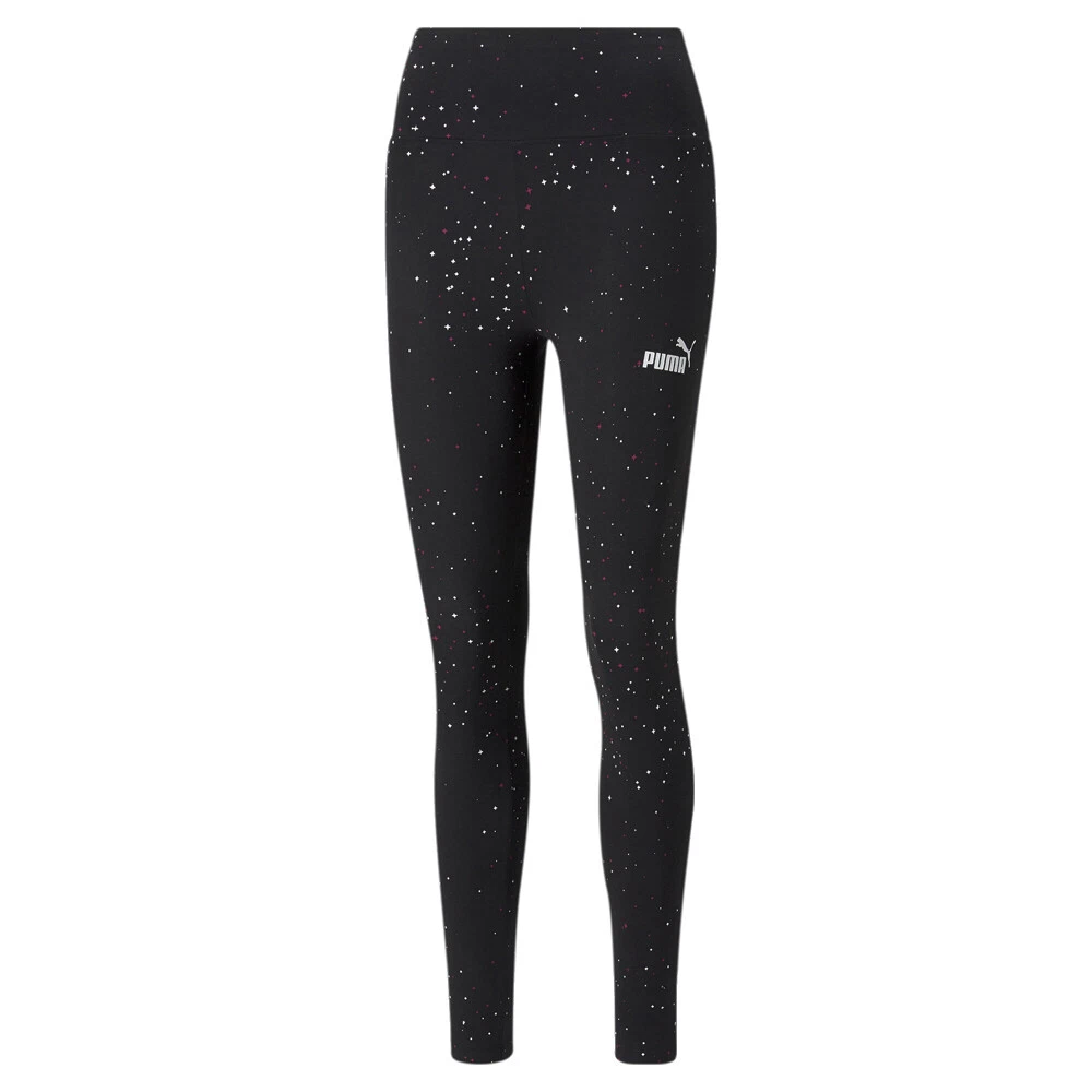 Power All Over Print Stardust Graphic 7/8 High-Waisted Leggings Product Details High rise elasticated waistband Graphic all-over print Sustainable materials 95% cotton, 5% elastane Featuring a tight fit, high waist, bold PUMA branding and all-over starlight graphics, these luxe leggings are attention-seeking in all the best ways. Additional Details Color: Black Occasion: Casual Gender: Womens Age: Adult Brand: Puma