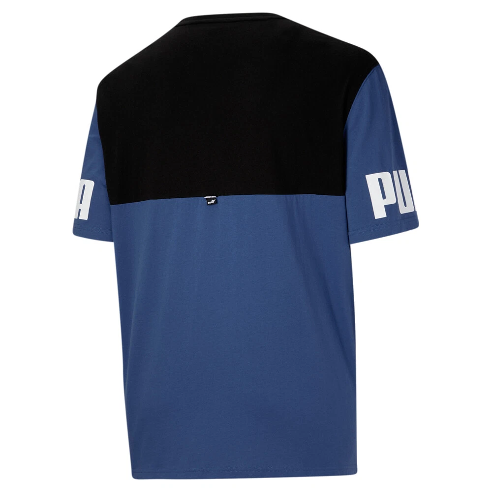 Power Colorblock Crew Neck Short Sleeve T-Shirt (Big &Tall) Product Details Crew neck Short sleeve PUMA logo 70% cotton, 30% polyester Make a power move in your comfort game. The PUMA Power Colorblock Men's Tee maximizes comfort without minimizing style. Additional Details Color: Black, Blue Occasion: Casual Gender: Mens Age: Adult Brand: Puma