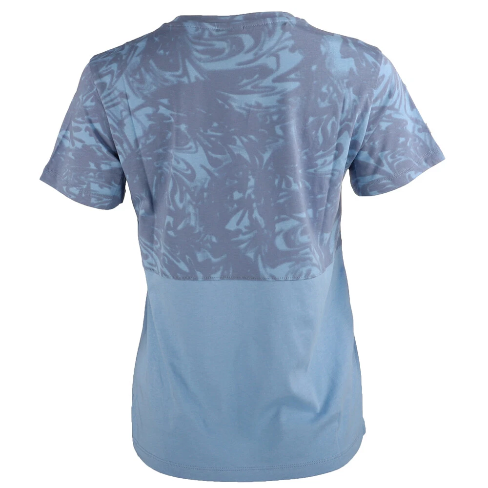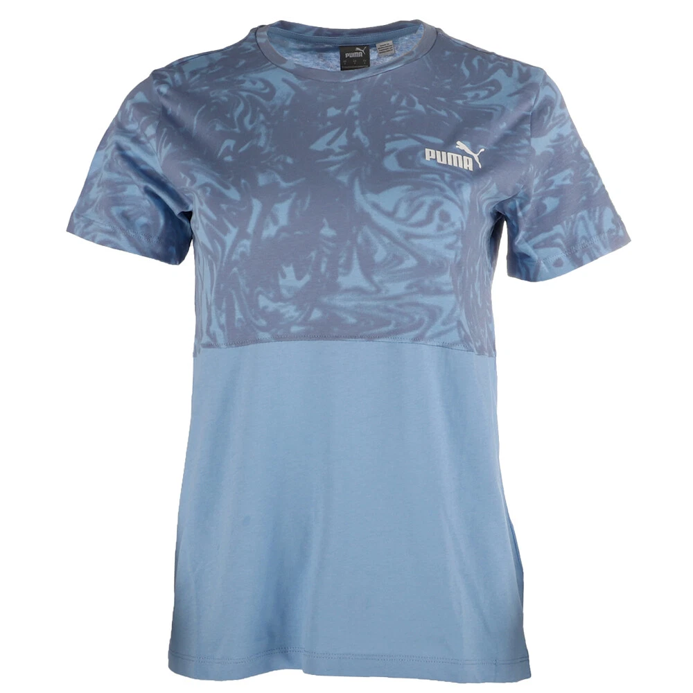 Power Colorblock Summer Crew Neck Short Sleeve T-Shirt Product Details Crew neck Short sleeves Stitched colorblocking with graphic pattern Logo print on left chest Crafted from 100% cotton for a fit that's as comfortable as it is stylish, this tee blends Day Dream blue with a pop of Puma pattern. Additional Details Color: Blue Occasion: Casual Gender: Womens Age: Adult Brand: Puma