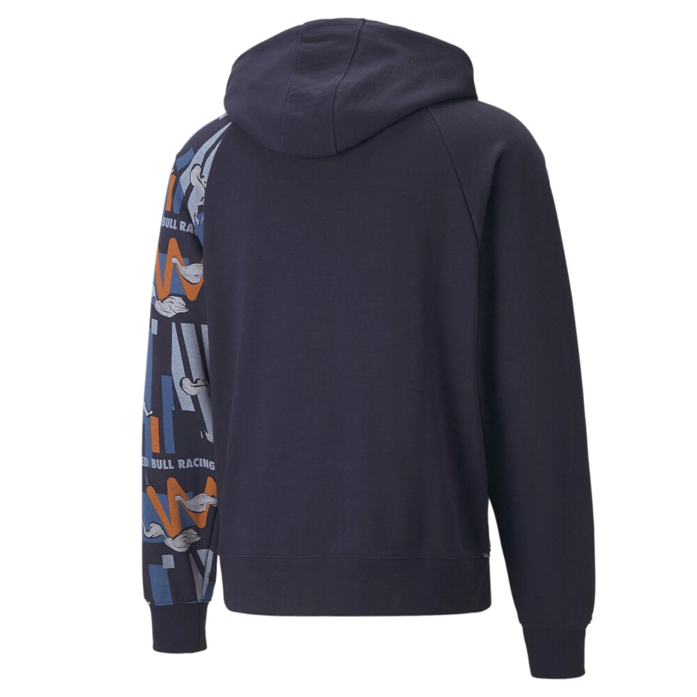 RBR X AOP Pullover Hoodie Product Details All-over printed front and side panel Drawstring hood Regular fit 70% cotton, 30% polyester Bring racing energy and adrenaline in this eye-catching asymmetrical hoodie! Additional Details Color: Blue Occasion: Casual Gender: Mens Age: Adult Brand: Puma